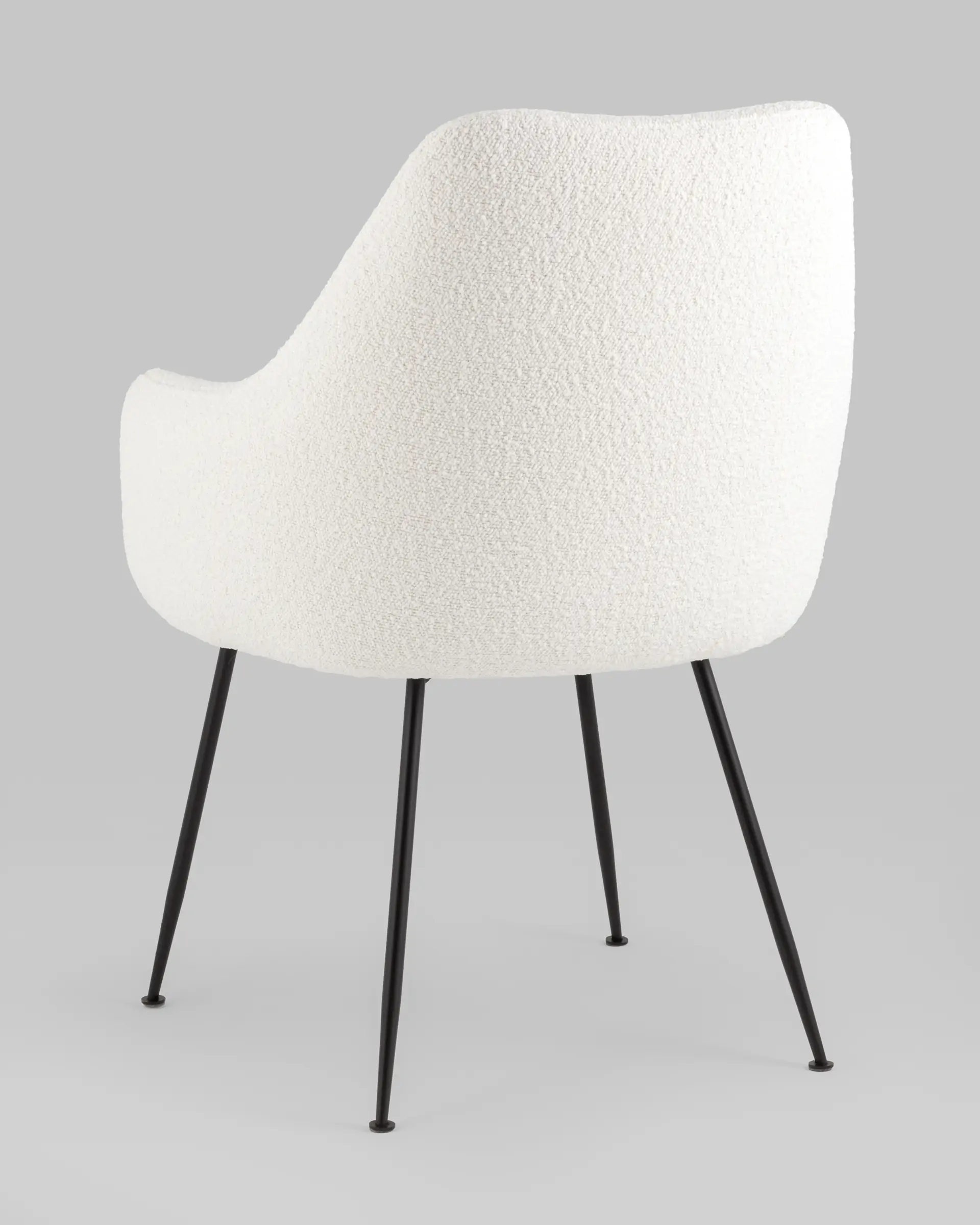 Запросить индивидуальное предложениеИзящный стул с комфортным сиденьем и спинкой. Основание и ножки черного матового цвета изготовлены из прочного металла. Обивка выполнена из прочной ткани с мягким ворсом в стиле букле, необычная фактура и мягкость добавляют стулу больше уюта.