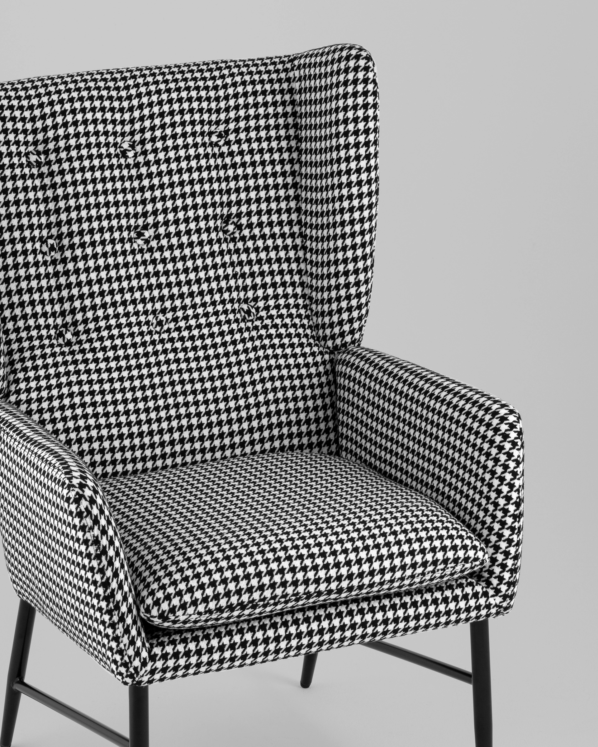 Запросить индивидуальное предложениеМягкое сиденье с высокой поддерживающей спинкой анатомической формы подарит комфорт и уют. В качестве обивки используется прочная износостойкая ткань с точечным декором. Металлический каркас выдерживает нагрузку до 120 кг и обеспечивает хорошую устойчивость. Удобные подлокотники добавят комфорта. Кресло прекрасно смотрится в гостиной или столовой зоне.