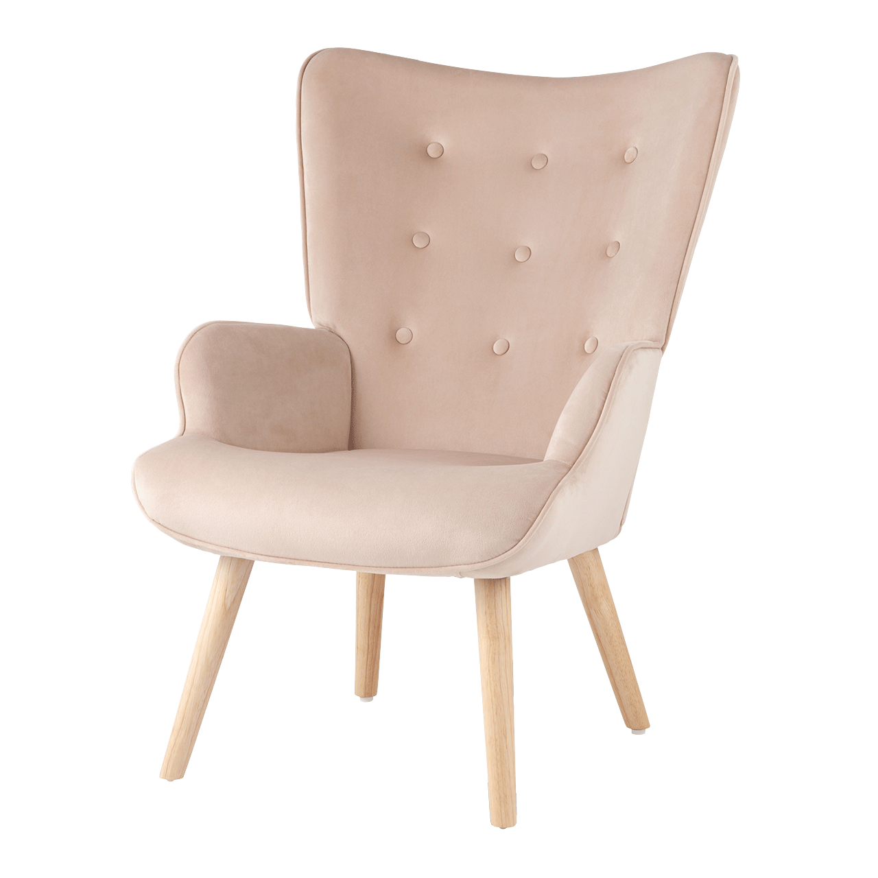 Запросить индивидуальное предложениеШироко расставленные ножки кресла, выполненные из массива гевеи, обеспечивают надежность и устойчивость конструкции. Удобные мягкие подлокотники и широкое сиденье дарят ощущение максимального комфорта и уюта. Обивка выполнена из мягкого, прочного велюра. Высокая спинка красиво декорирована пуговицами. На ножках предусмотрены специальные подпятники, которые предотвращают скольжение и не царапают напольное покрытие.