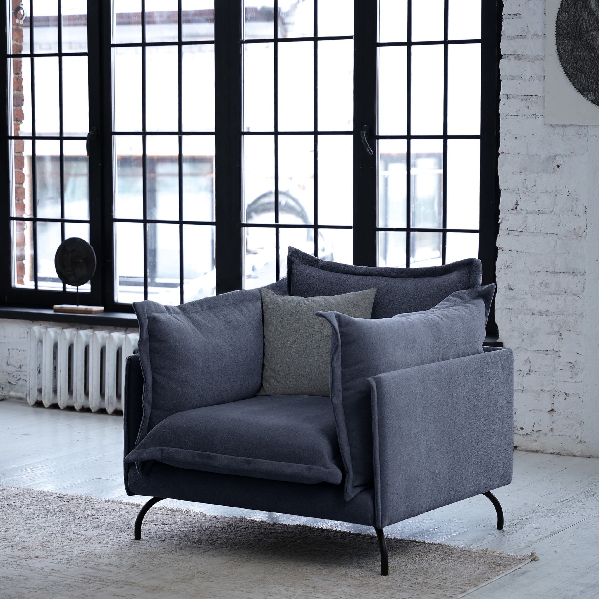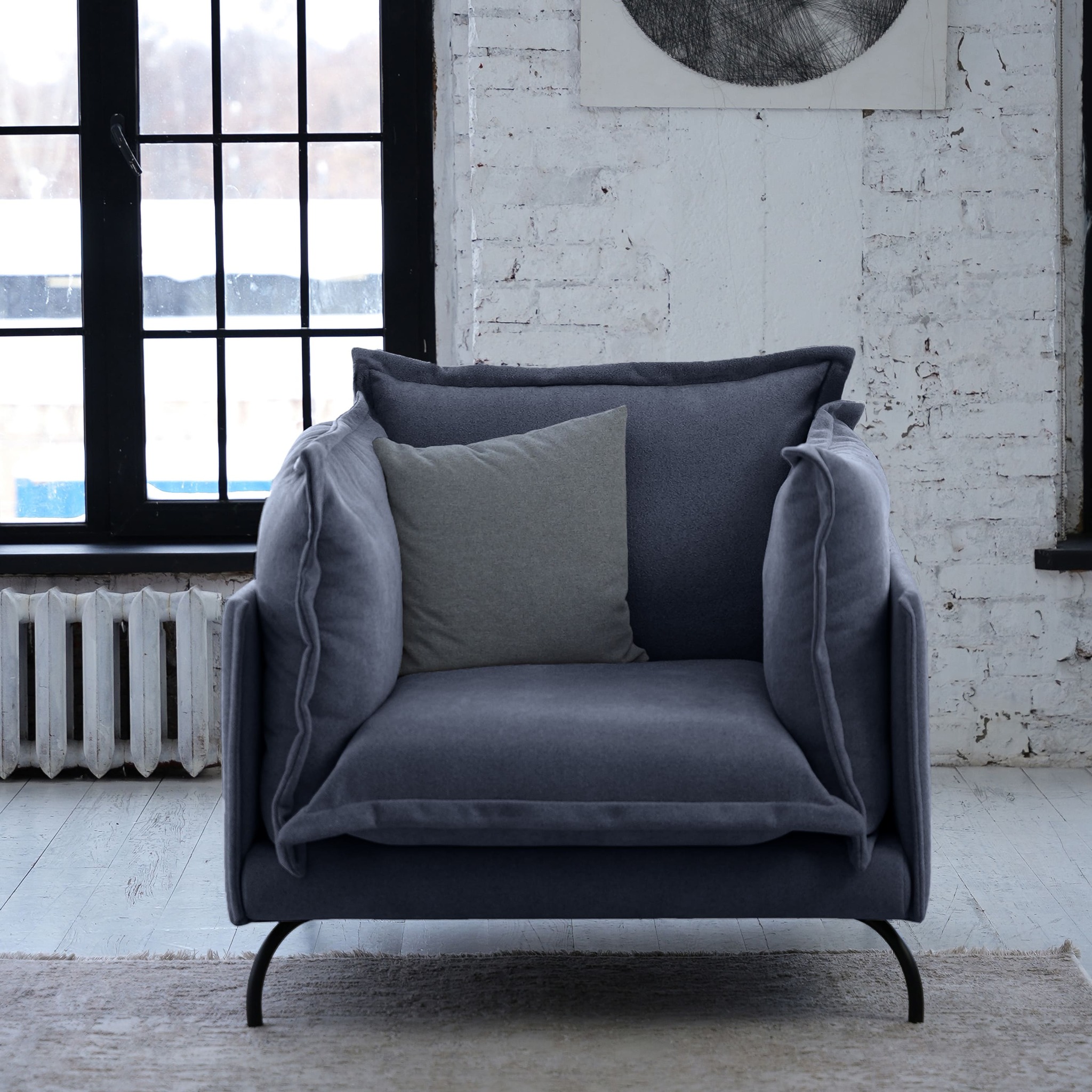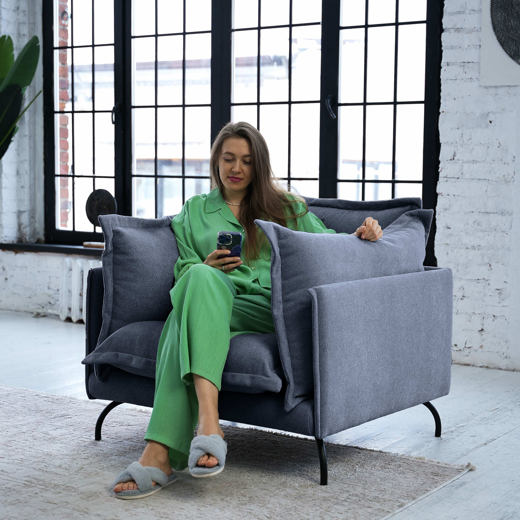 Запросить индивидуальное предложениеВнутри кресла находится пенополиуретан «Аселекс» — современный высокоэластичный материал. «Аселекс» держит заданную форму и возвращает ровную поверхность — больше никаких комков, прогибов и уплотнений. Ещё «Аселекс» сохраняет тепло и не вызывает аллергии: кресло станет безопасным местом для детей и аллергиков. Антибактериальный состав наполнителя не требует особого ухода и замены — даже спустя много лет.Декоративные подушки наполнены синтешаром — лёгким, но плотным наполнителем, который хорошо вентилируется и быстро восстанавливают форму.Каркас состоит из прочной берёзовой фанеры. Фанера для кресла «Облако комфорта» изготовлена из натуральной древесины высшего сорта и проклеена современным клеевым составом — антибактериальным и гипоаллергенным. Фанера не впитывает влагу и не деформируется со временем.Кресло стоит на высоких металлических ножках. Их длина — 15 см, под которые легко заедет робот-пылесос. Высокие ножки делают вид внешний вид кресла воздушнее и легче, но способны выдержать вес до 120 кг многие годы при ежедневной нагрузке.