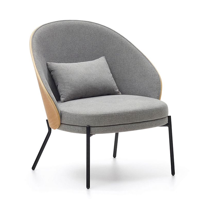 Кресло Eamy светло-серое из шпона ясеня с натуральной отделкой