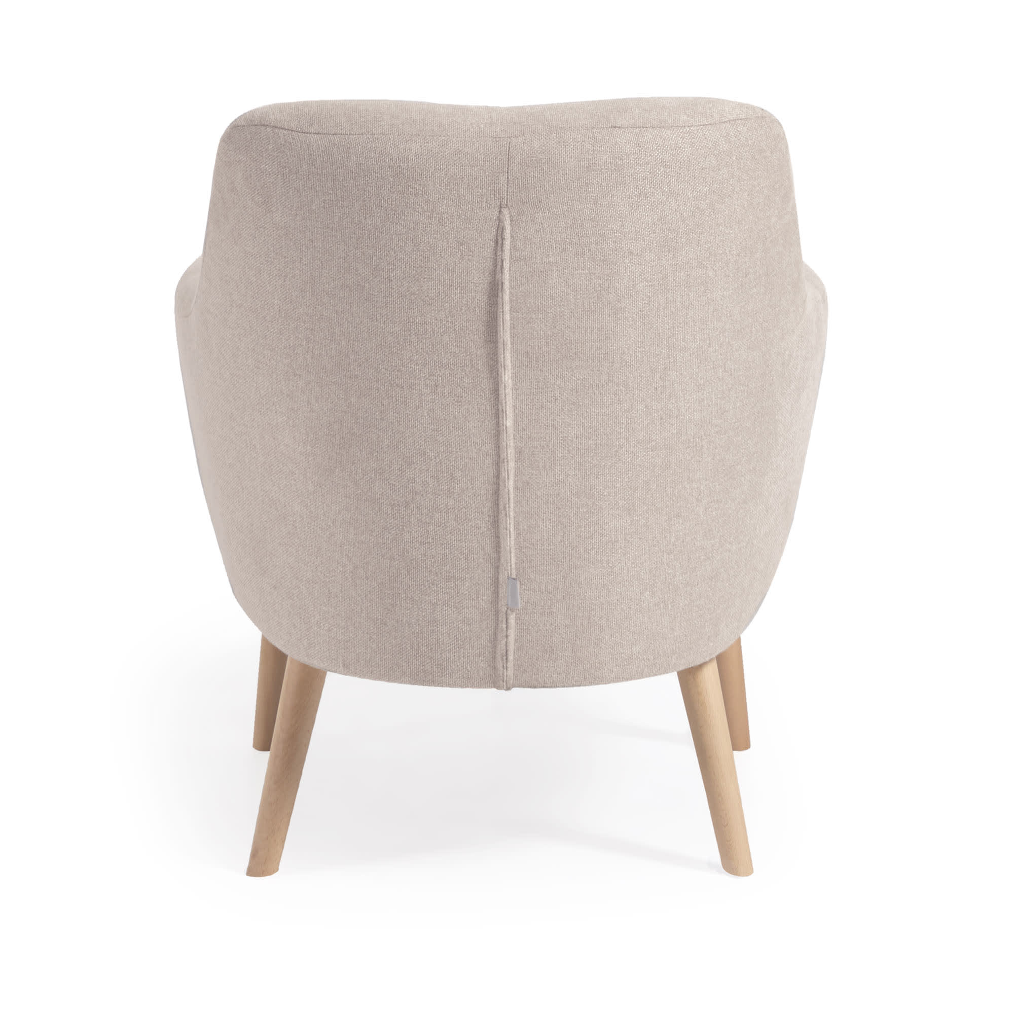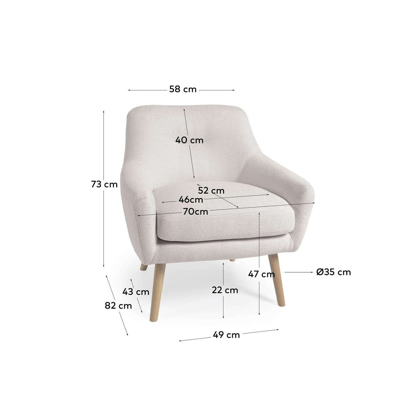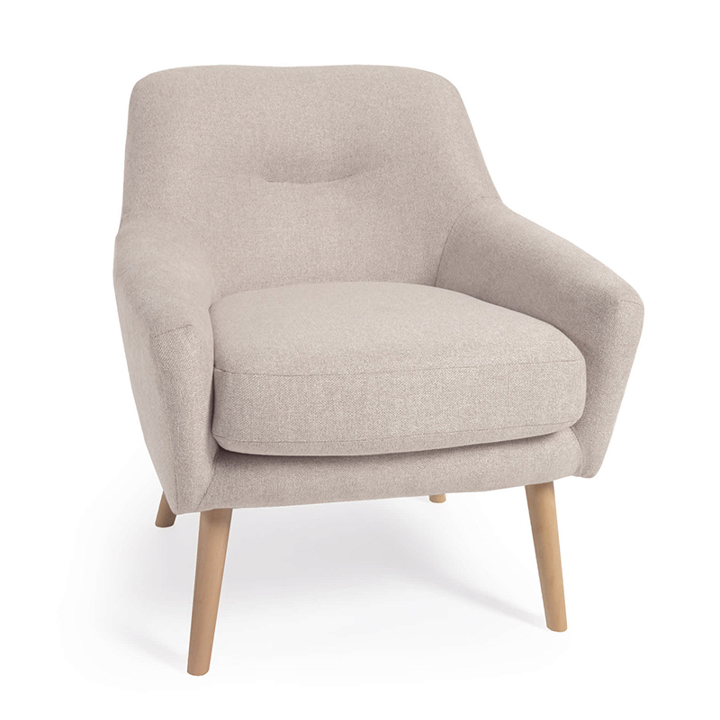 Кресло состоит из каркасного сиденья в тканевой обивке и опоры из массива бука в натуральной отделке.