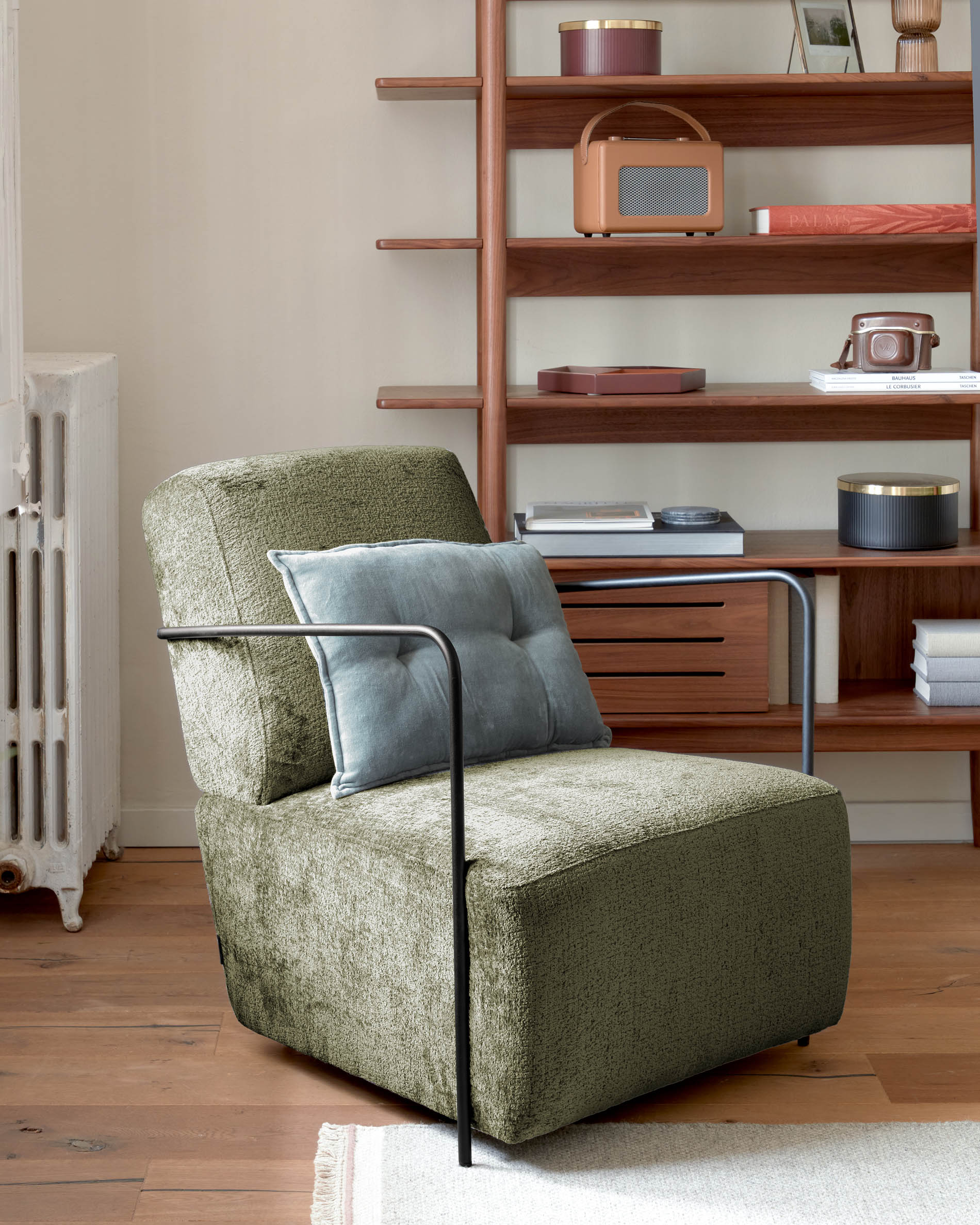 Кресло Gamer из зеленой синели и металла с черной отделкой