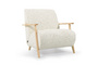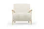 Каркас кресла сделан из фанеры сосны. Она обита пеной плотностью 30 и 20 кг/м3, обтянута тканью букле.