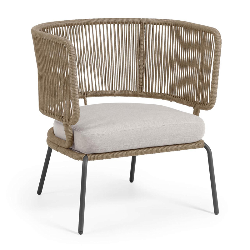 Кресло Nadin из бежевого шнура с ножкой из оцинкованной стали