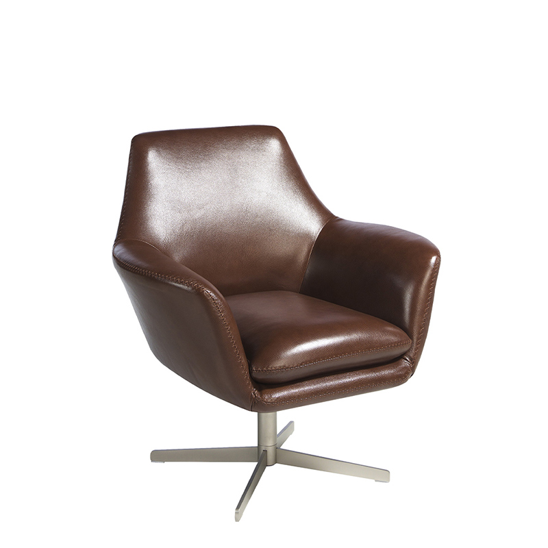 Поворотное кресло 5093/A832-M1595 кожаное с ножкой из полированной стали