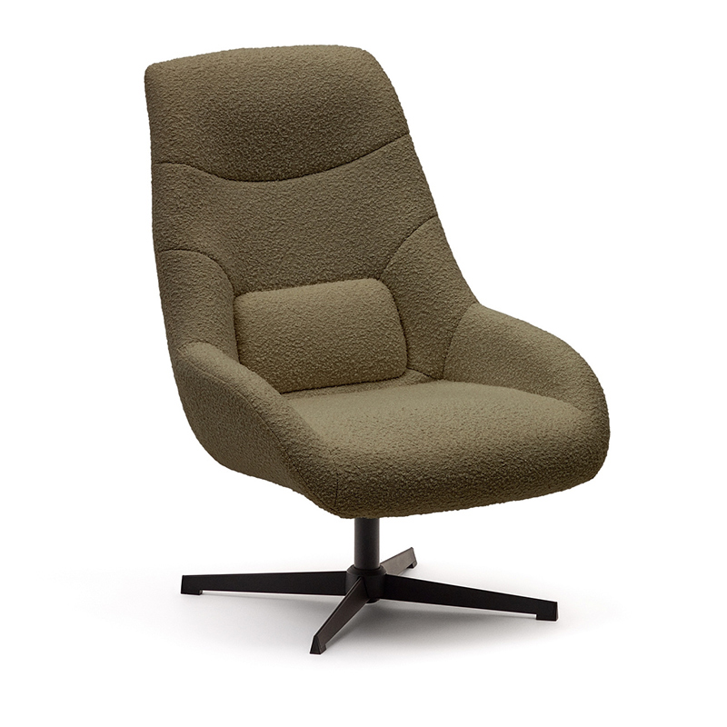 Celida Вращающееся кресло из темно-зеленой ткани букле и стали с черной отделкой