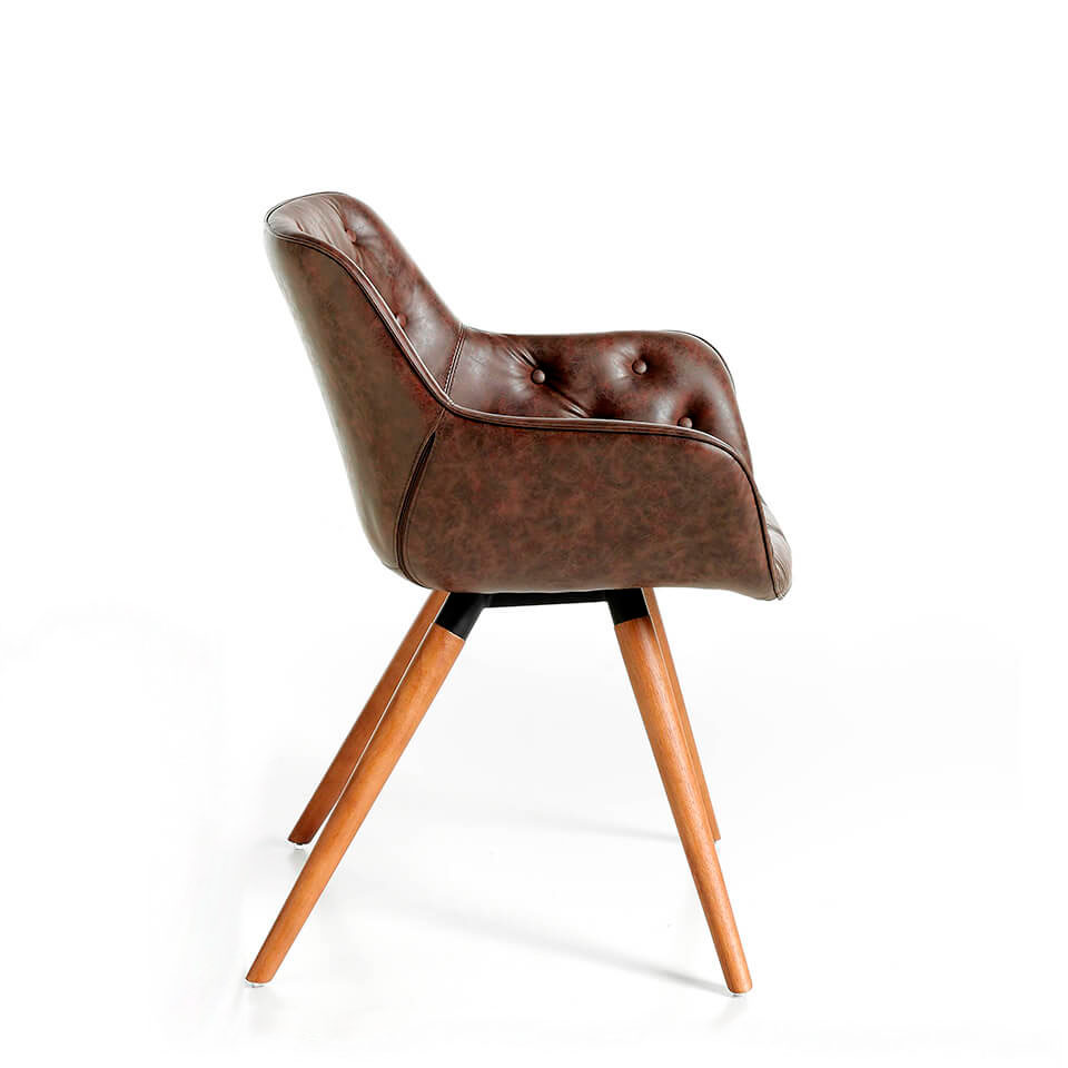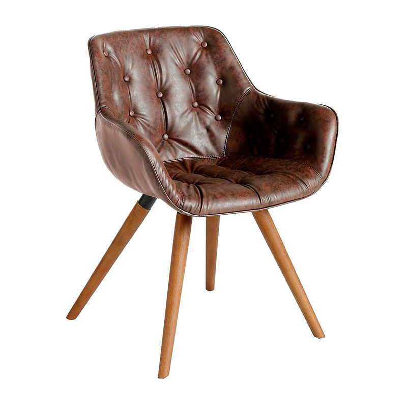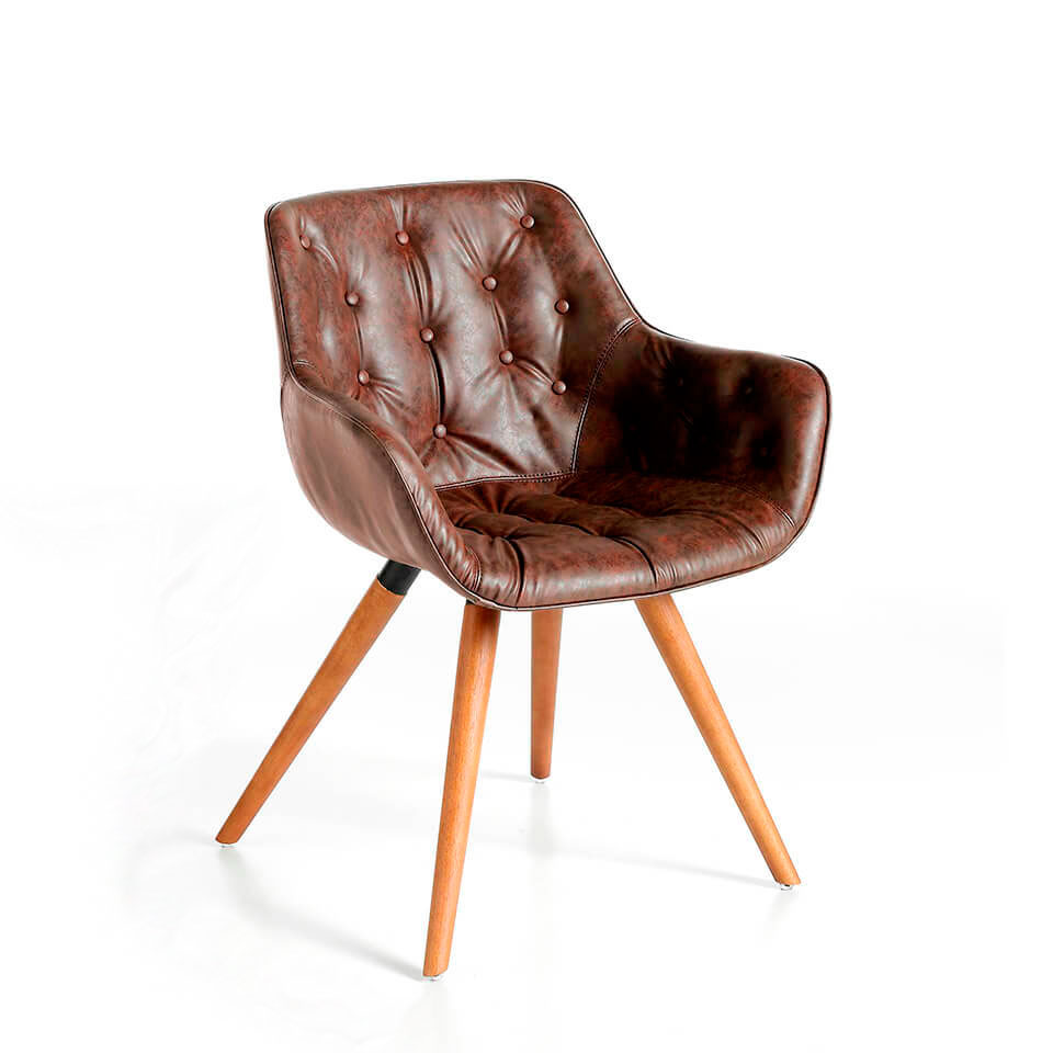 Запросить индивидуальное предложениеКресло Angel Cerda F3229 — изящество в современном дизайне для городской квартиры. Кресло однозначно очарует тех, кто предпочитает легкую и небольшую по своим габаритам мебель, но не в ущерб ее комфорту. У этой модели мягкость визуально выделена каретной стяжкой, что говорит ее удобстве. А тактильно приятный и практичный материал обивки — дополнительный бонус для повышения эргономичности этого изделия. Каркас у этой модели цельный. Он сделан из натурального дерева, которое обтянуто искусственной кожей и мягким наполнителем. Материал обивки практичен, легко поддается чистке, гипоаллергенен. А ее теплый коричневый цвет прекрасно гармонирует с деревянной мебелью. Имеющая комфортный угол наклона спинка, декорирована каретной стяжкой. Такой дизайнерский ход имеет сразу два преимущества: модель выглядит необычно, а мышцам спины обеспечен микро-массаж. Высокие подлокотники имеют обтекаемую форму, благодаря чему руки не будут уставать и испытывать дискомфорт. Кресло стоит на четырех ногах, которые закреплены под небольшим углом (для увеличения площади опоры) к нижней части сиденья. Они выполнены из натурального дерева, имеют конусообразную форму. Изделие поставляется в разобранном виде (ноги отдельно). Цвета отделки указываются в соответствии с каталогом производителя. Допускается незначительное отклонение в цвете, обусловленное техническими особенностями цветопередачи фотографий.