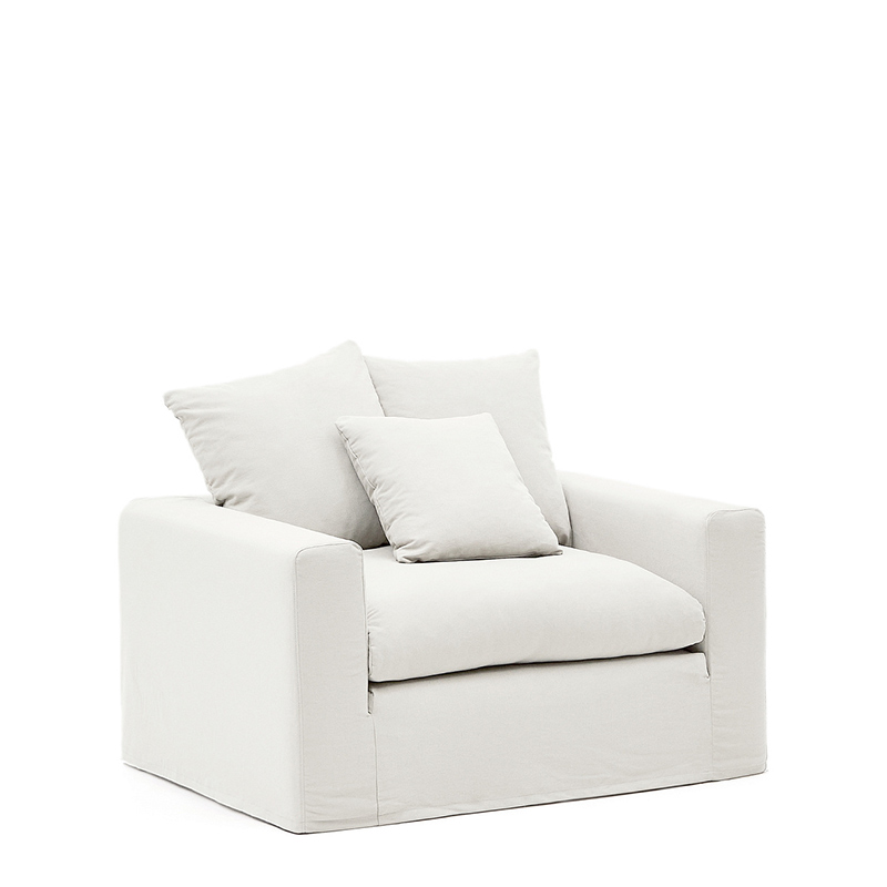 Кресло Nora со съемным чехлом и подушкой из льна и хлопка цвета экрю 92 см