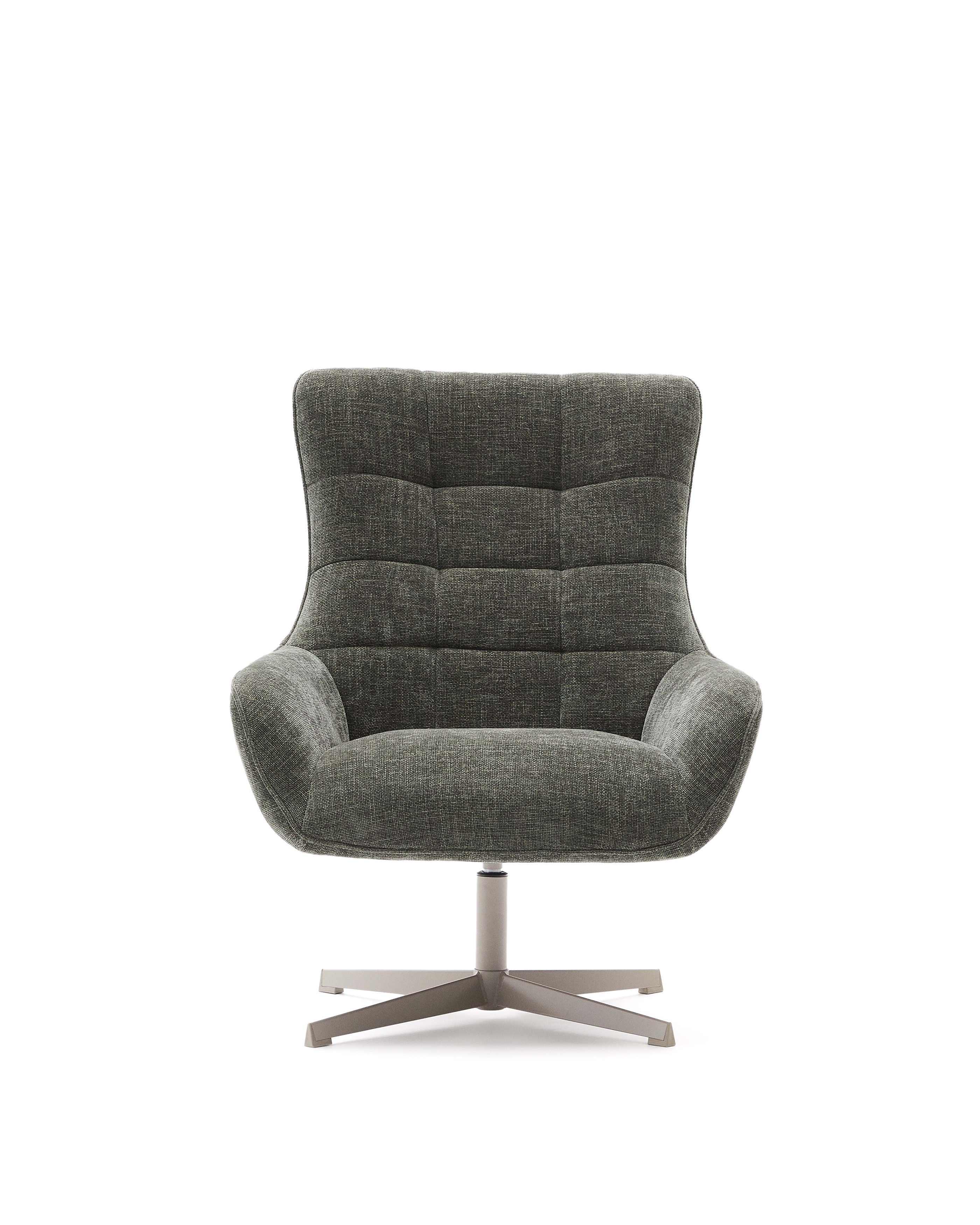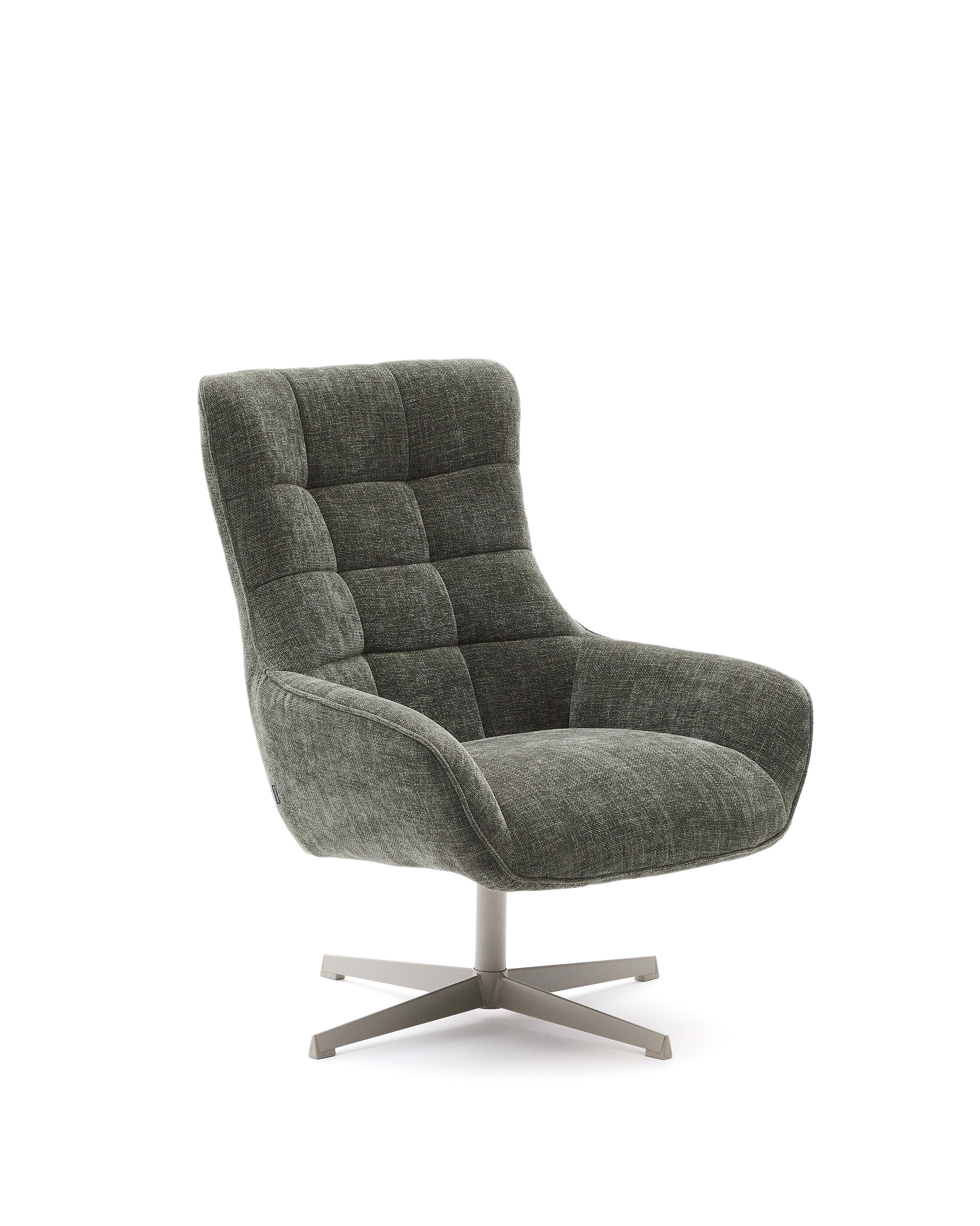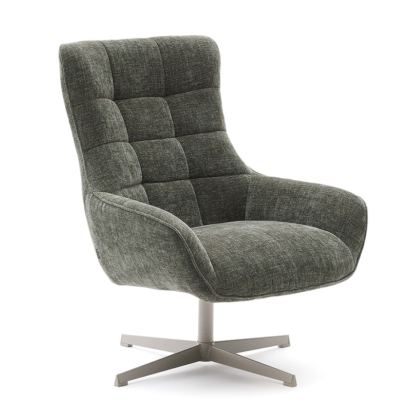 Teryl Кресло из шенилла зеленого цвета с серым металлом