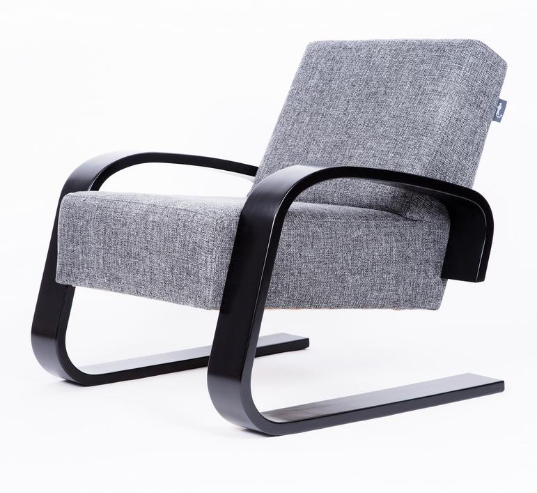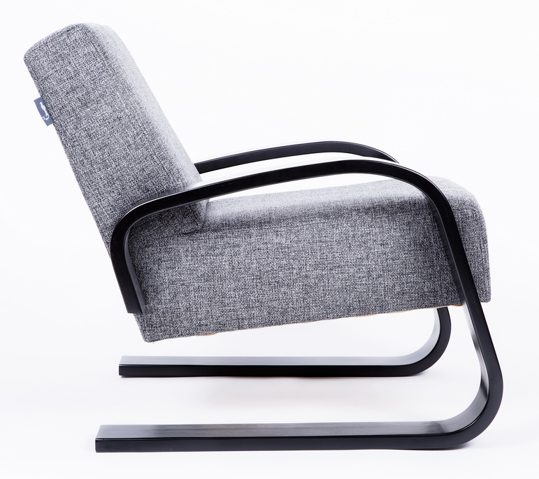 Запросить индивидуальное предложениеКресло с тканевой обивкой цвета Муссон и каркасом цвета Венге.