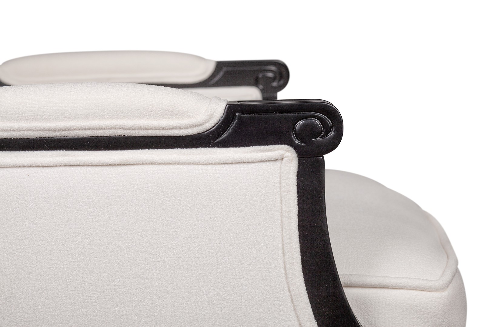 Запросить индивидуальное предложениеКресло Tous white с каркасом из массива бука и обивкой из букле белого цвета. По периметру спинки проходит деревянная окантовка, переходящая в подлокотники с мягкой накладкой. Пышное объемное сиденье служит для комфортного отдыха. Нейтральная расцветка придает модели универсальность, позволяет вписываться в любые интерьеры.