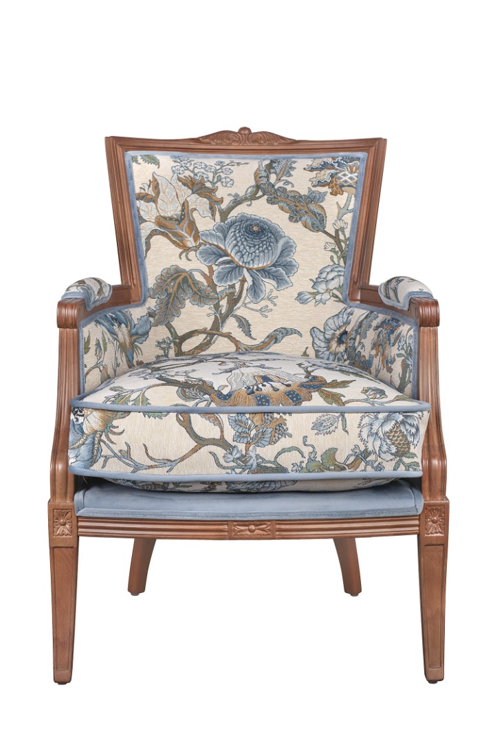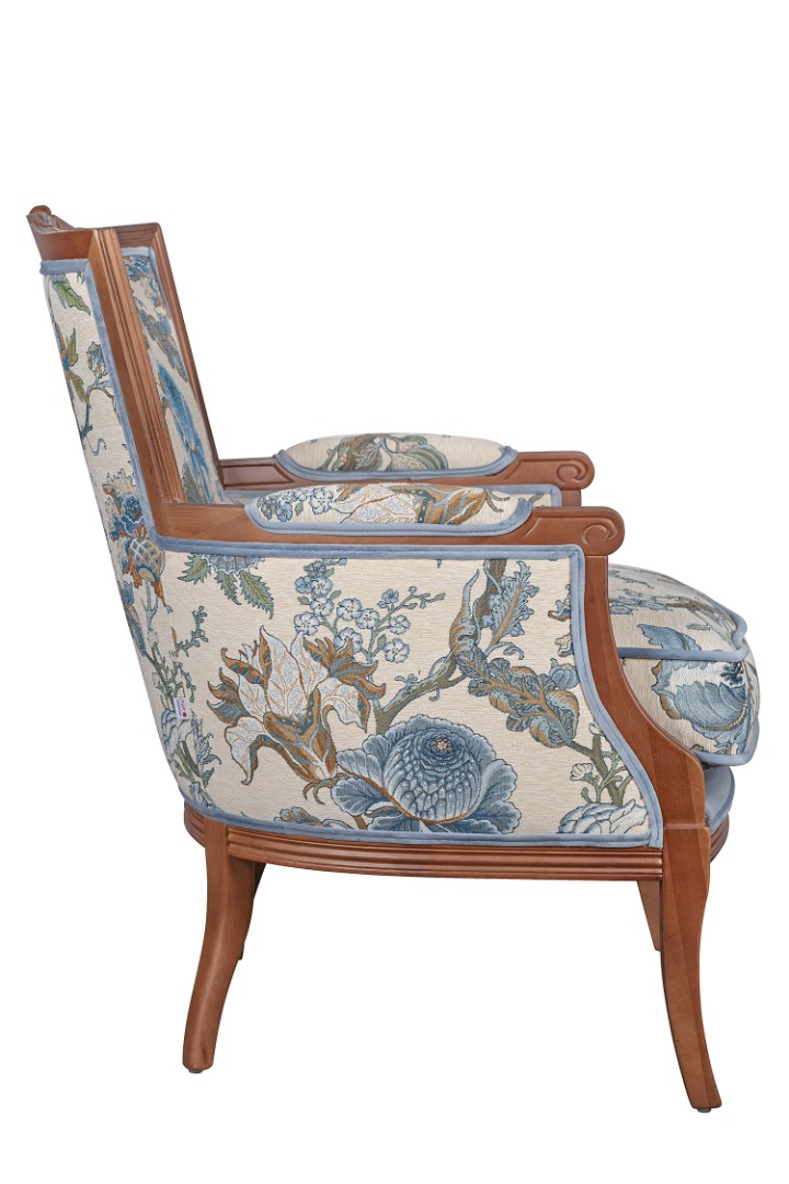 Запросить индивидуальное предложениеКресло Tous Flower с каркасом из массива бука и обивкой жаккард с узором. По периметру спинки проходит деревянная окантовка, переходящая в подлокотники с мягкой накладкой. Пышное объемное сиденье служит для комфортного отдыха. Нейтральная расцветка придает модели универсальность, позволяет вписываться в любые интерьеры.