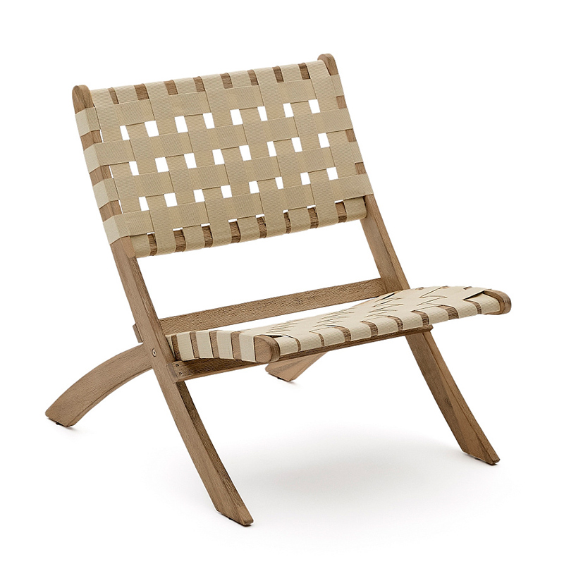 Складное кресло Chabeli из массива акации и шнура кремового цвета
