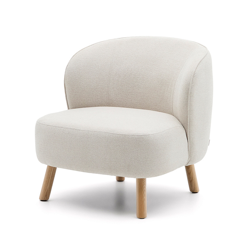 Кресло Ulit из бежевого шенилла с ножками из бука в натуральной отделке