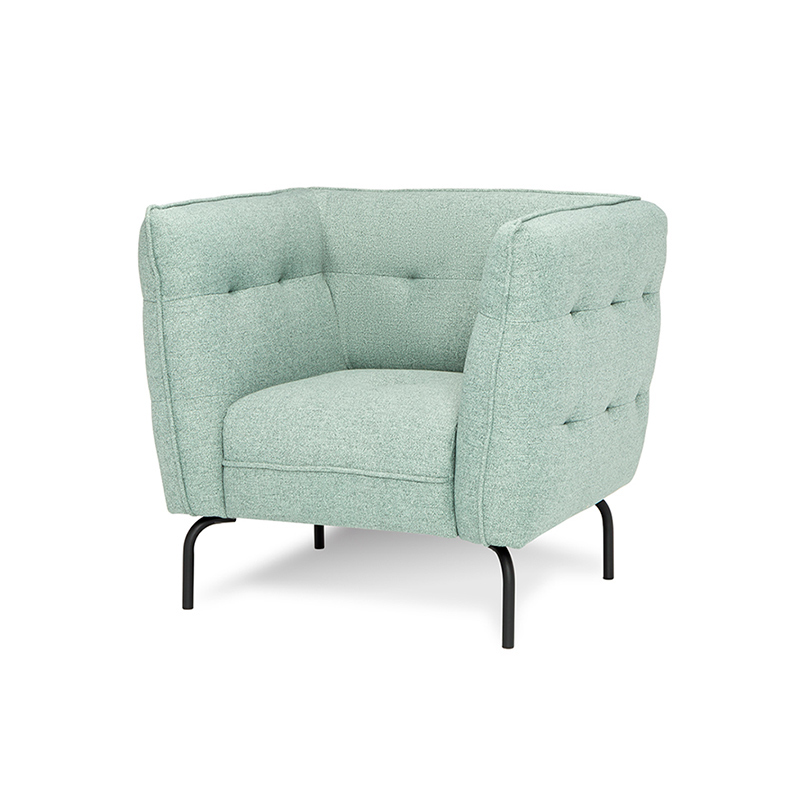 Особую индивидуальность и легкость модели придают декоративные утяжки по периметру спинки и подлокотников, а также на сиденье