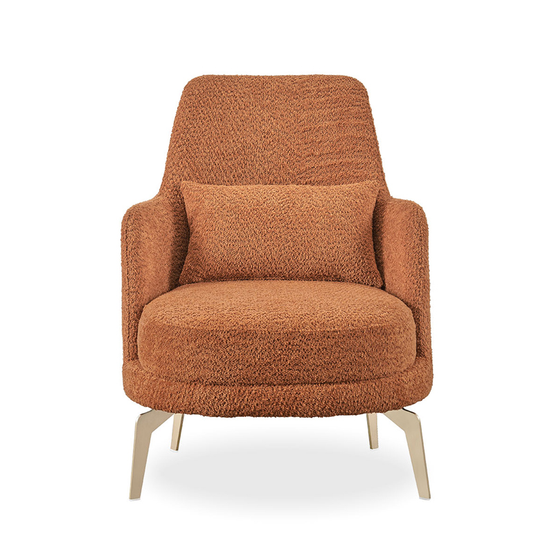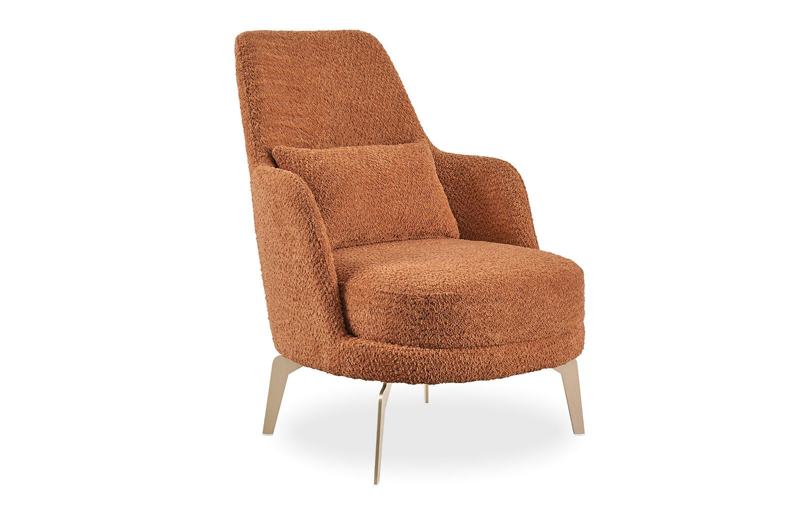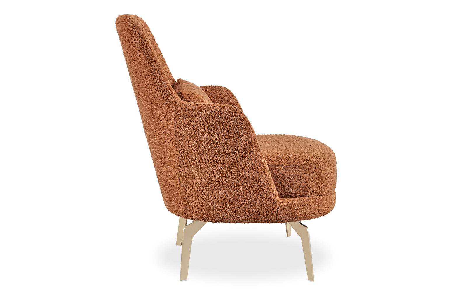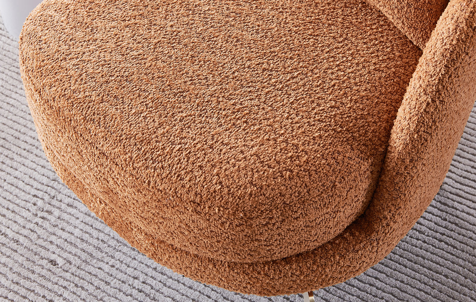 Его обивка изготовлена из ткани тедди терракотового оттенка, элегантного и благородного, хорошо гармонирующего с другими цветами.