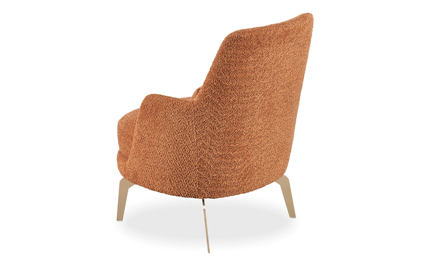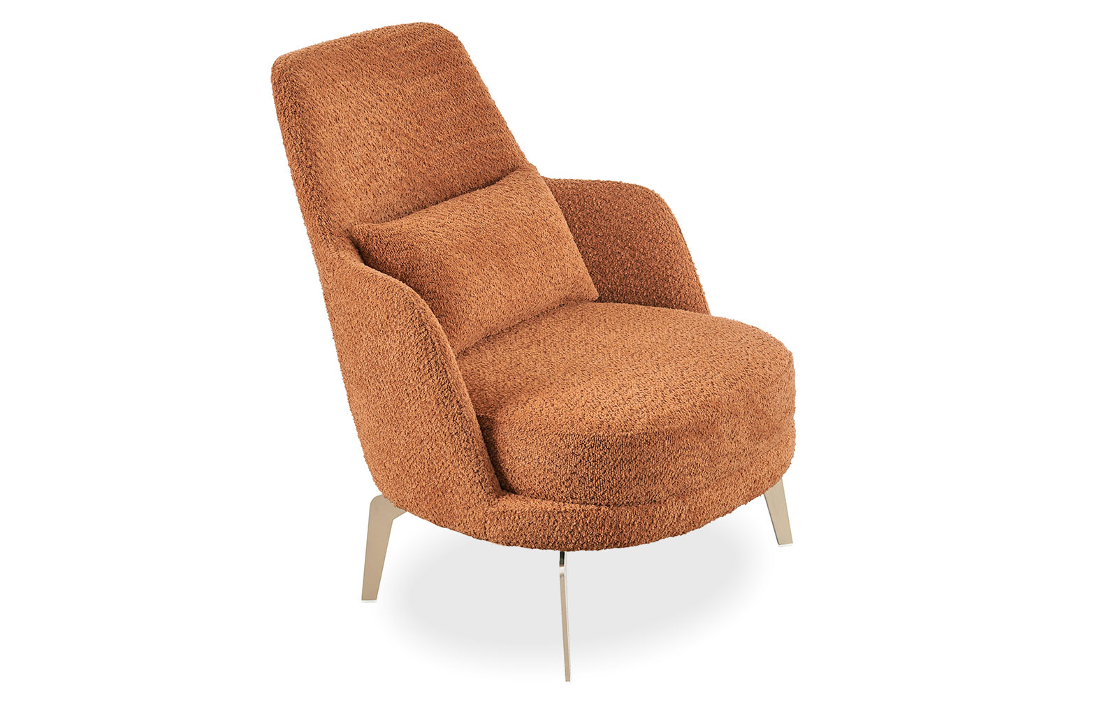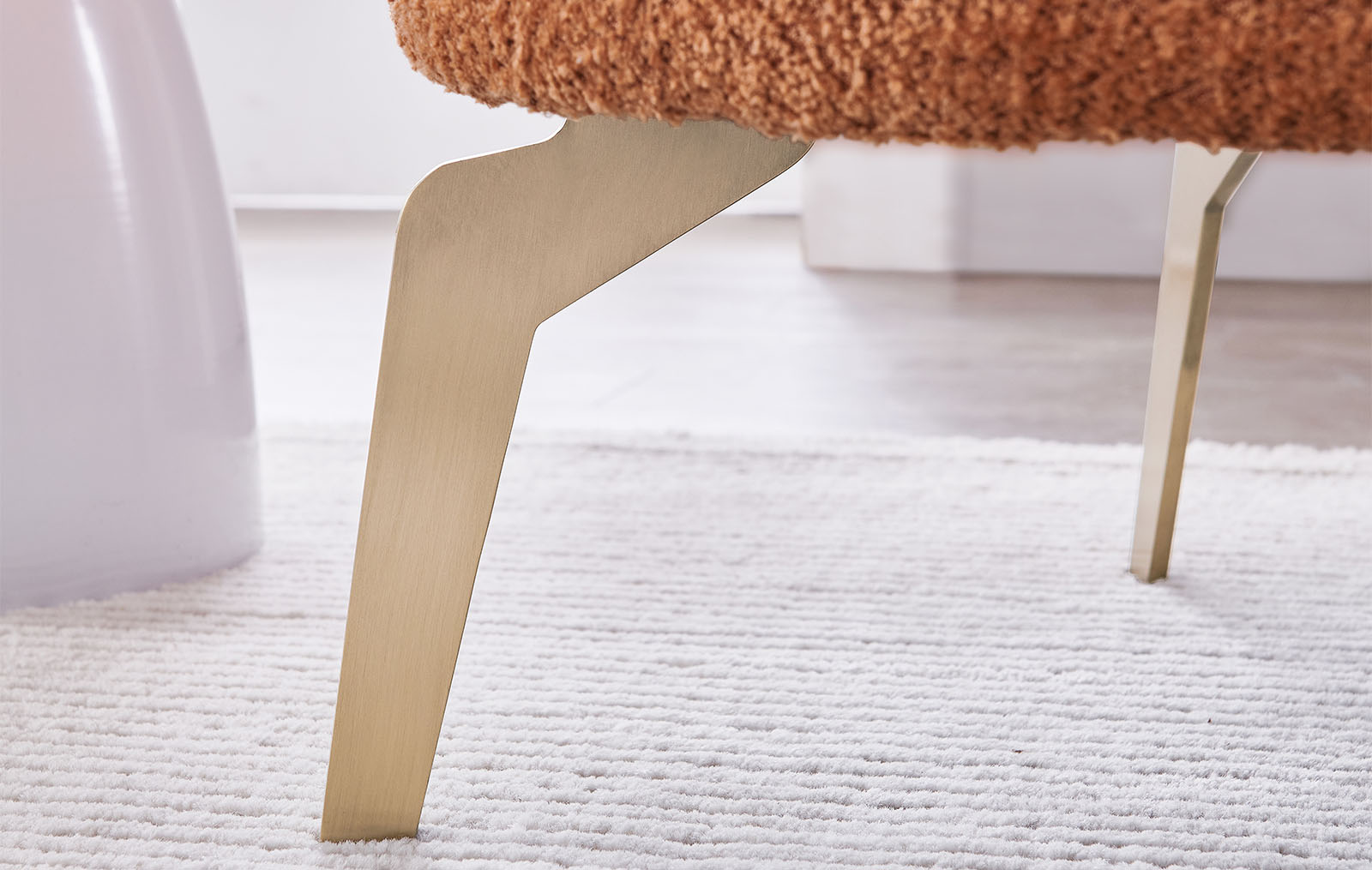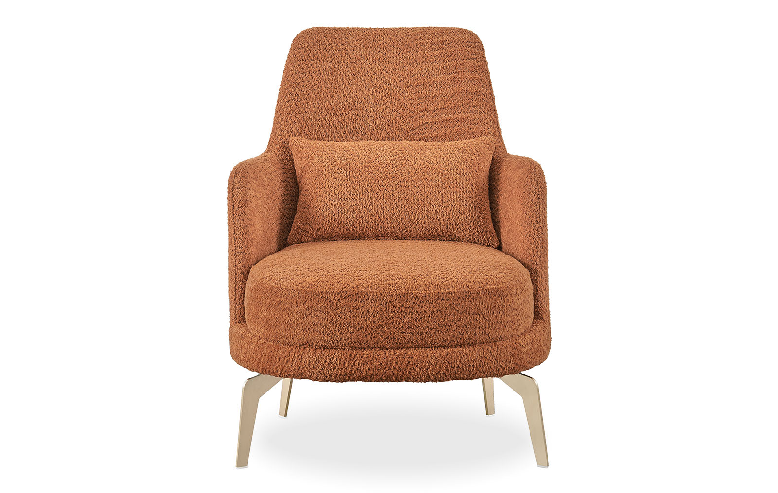 Его обивка изготовлена из ткани тедди терракотового оттенка, элегантного и благородного, хорошо гармонирующего с другими цветами.