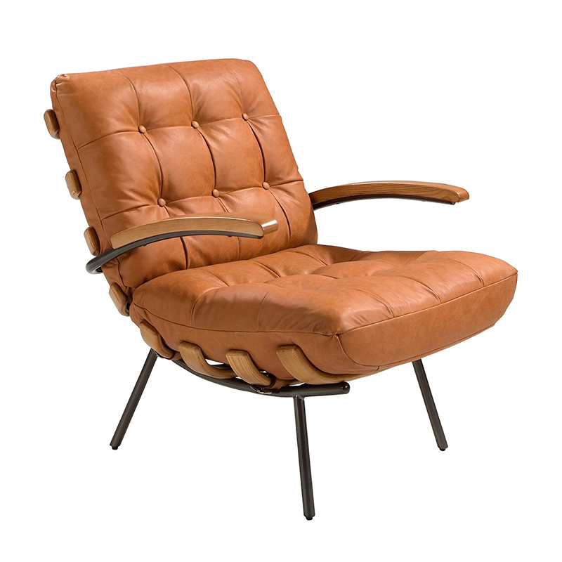 Кресло 5153 из коричневой кожи с подлокотниками из ясеня
