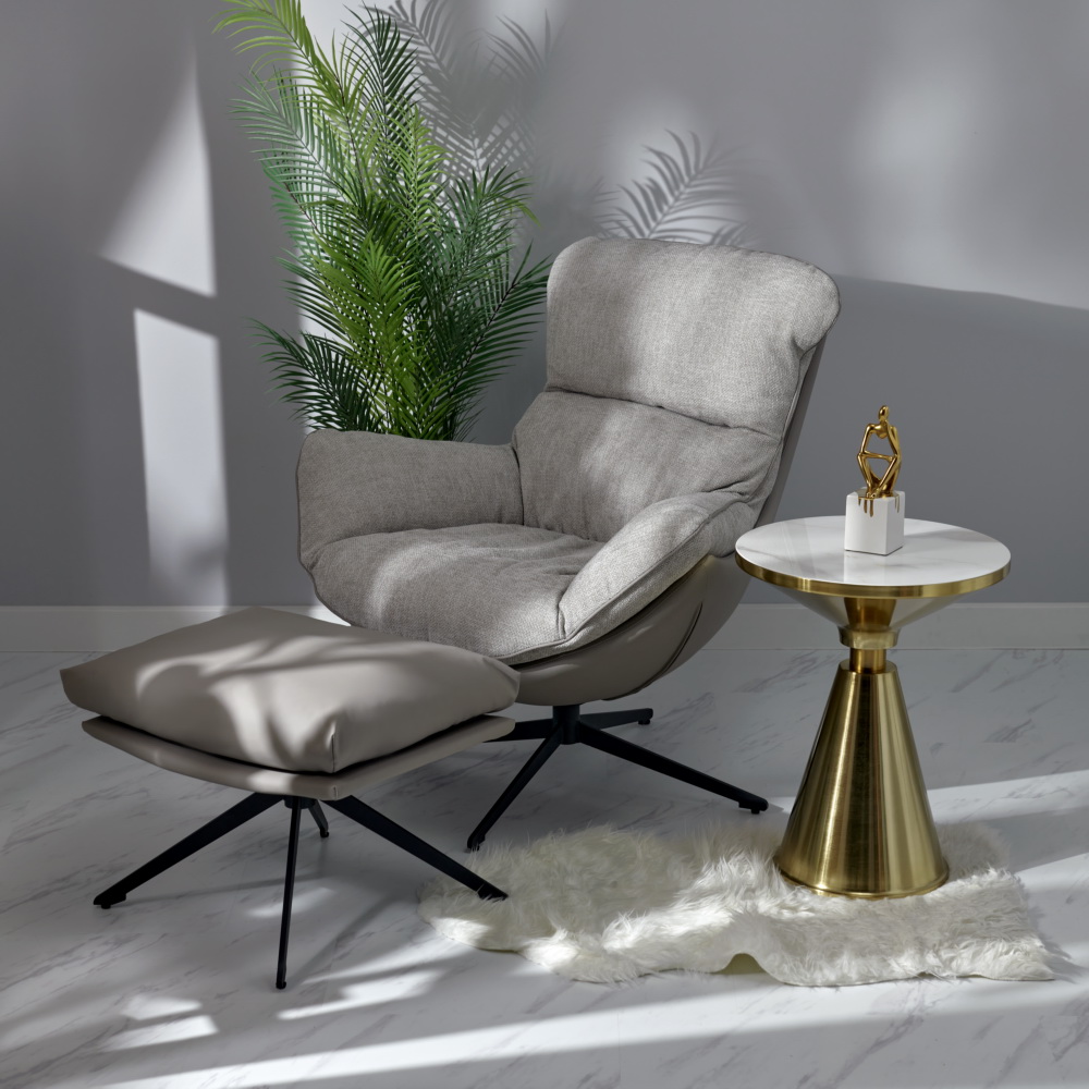 Лаундж-кресло вращается на 360 градусов, и для полного релакса советуем дополнить его удобной оттоманкой.