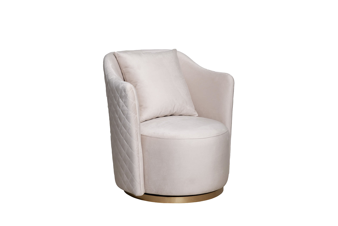 Запросить индивидуальное предложениеЭксклюзивное вращающееся кресло Verona станет украшением интерьера гостиной, кабинета, холла, столовой, лаунж-зоны. Максимально комфортное, стильное и универсальное в плане интерьерной компоновки. Стильное кресло с механизмом вращения вокруг своей оси обеспечит повышенный комфорт и хорошую поддержку спине. Изюминка модели – декоративное основание из позолоченного металла, что придает креслу изящества и визуальной легкости. Подушка и обтекаемая форма спинки с подлокотниками делают его особенно уютным. Размер сиденья Г58*Ш60*В40см. Диаметр металлической части основания - 58см, высота - 3,5см. В стандартном исполнении: обивка - ткань велюр из коллекции тканей Garda Decor Colton002, основание - полированная нержавеющая сталь с глянцевым золотым гальваническим покрытием.