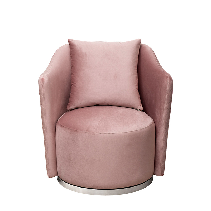 Запросить индивидуальное предложениеДизайнерское розовое кресло VERONA станет эффектным дополнением современного интерьера, где ключевую роль играет эксклюзивность и эстетика мебели. Благодаря механизму вращения сидение легко крутится вокруг своей оси, что удобно для отдыха и работы. Лаконичный дизайн, мягкая спинка с удобными подлокотниками и подушка делают это кресло прекрасным выбором для гостиной, спальни, кабинета, детской комнаты. Купить вращающееся кресло можно для интерьеров в стиле ар-деко, неоклассика, контемпорари. Размер сиденья Г58*Ш60*В40см. Диаметр металлической части основания - 58см, высота - 3,5см. В стандартном исполнении: обивка - ткань велюр из коллекции тканей Garda Decor Colton007, основание - полированная нержавеющая сталь- цвет хром.