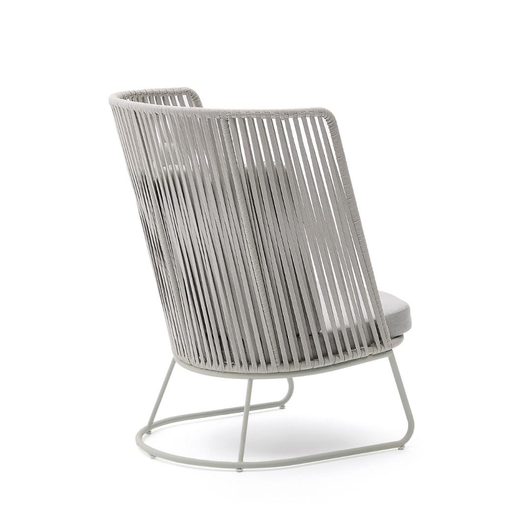 Уличное кресло Saconca с высокой спинкой из веревочного шнура и серой оцинкованной стали