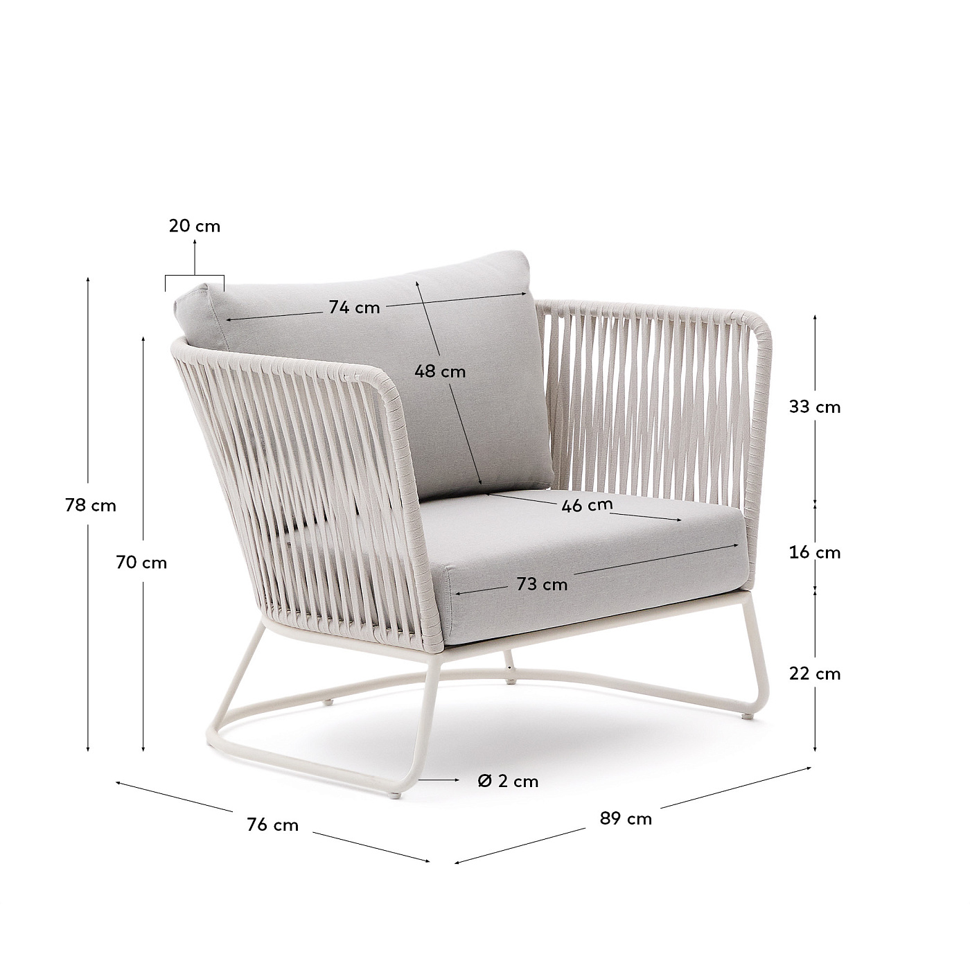 Уличное кресло Saconca из веревочного шнура и серой оцинкованной стали