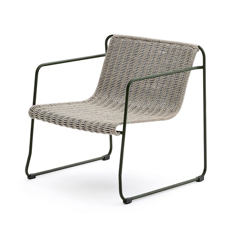 Кресло Maurina из оцинкованной стали зеленого цвета и серой веревки