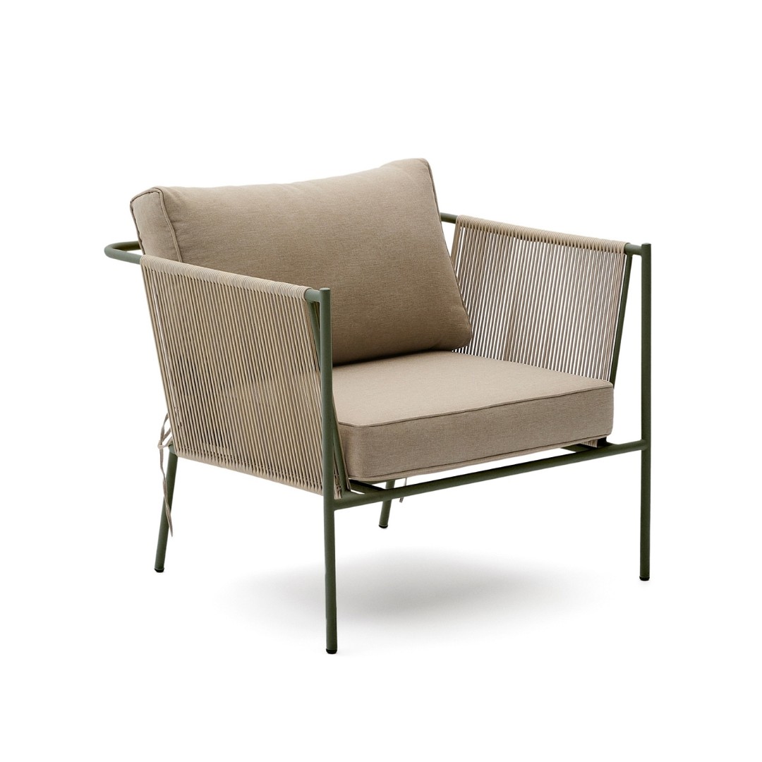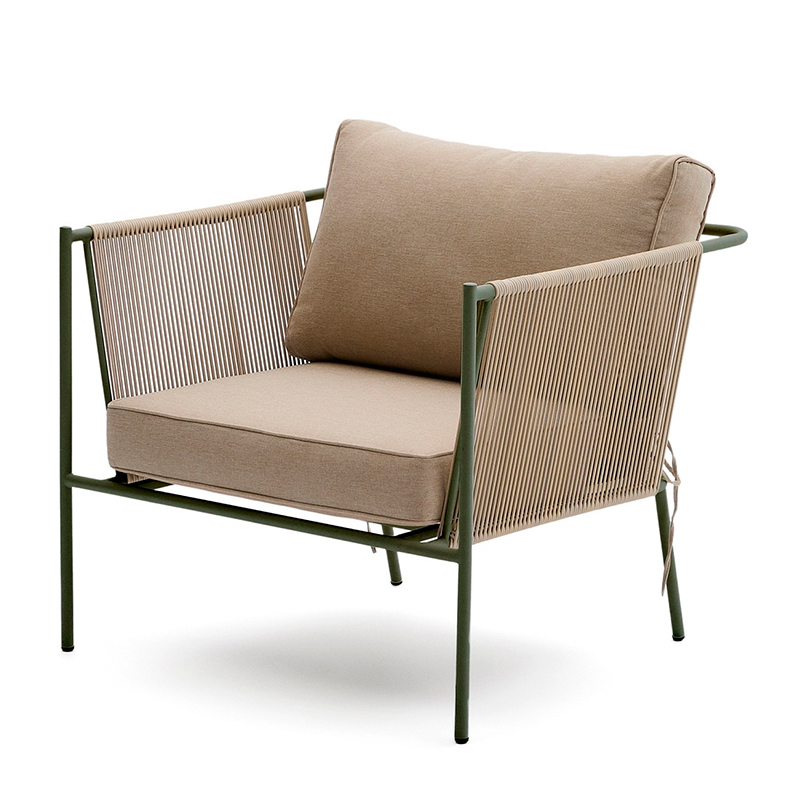 Уличное кресло Zivia из веревки цвета экрю и стали зеленого цвета