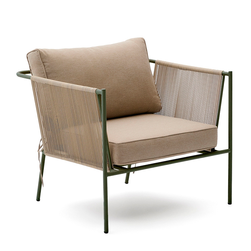 Уличное кресло Zivia из веревки цвета экрю и стали зеленого цвета
