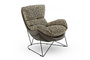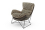 Оригинальная ножка кресла выполнена в виде металлического каркаса из прутьев, что придает ему современный и легкий вид, визуально освобождая пространство.