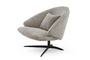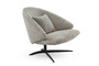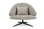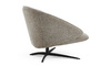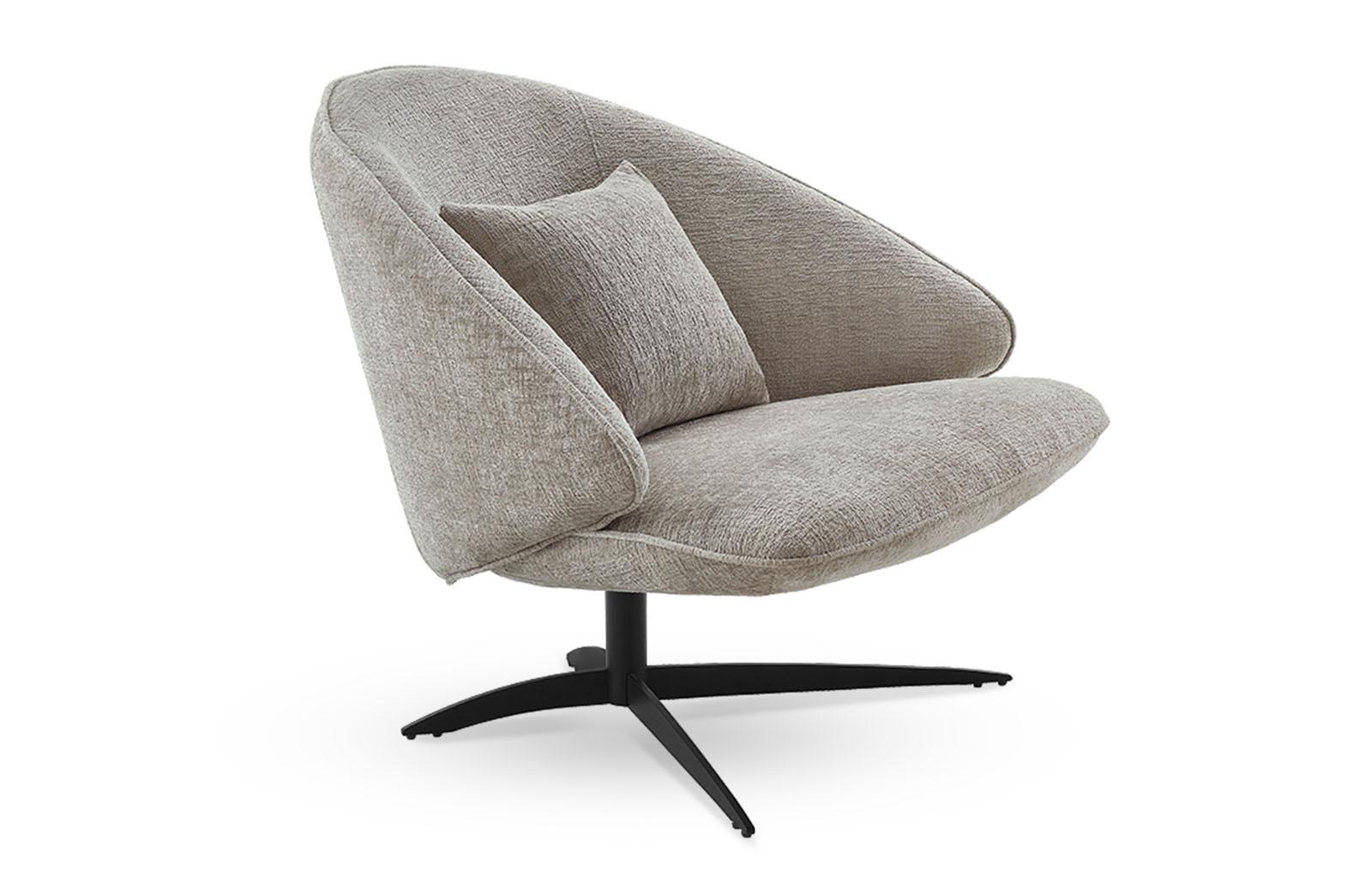Универсальный серо-бежевый оттенок обивки впишется в различные цветовые схемы гостиных и лаунж зон. Ножка на крестообразном основании - из черного металла.