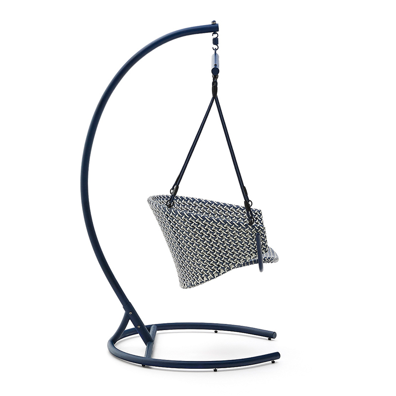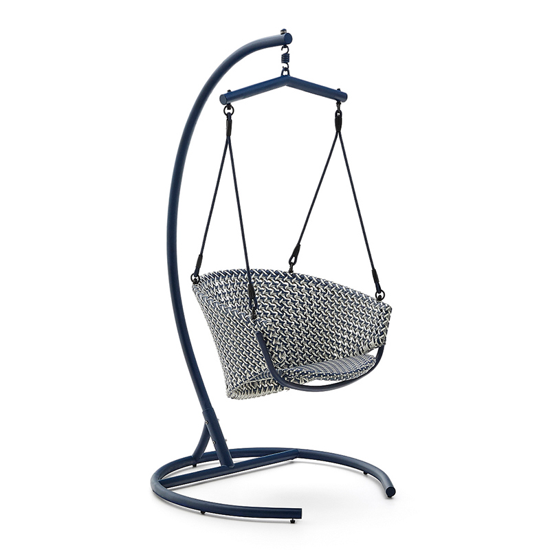 Подвесное кресло Saliga синего цвета с основанием из алюминия и синтетического ротанга