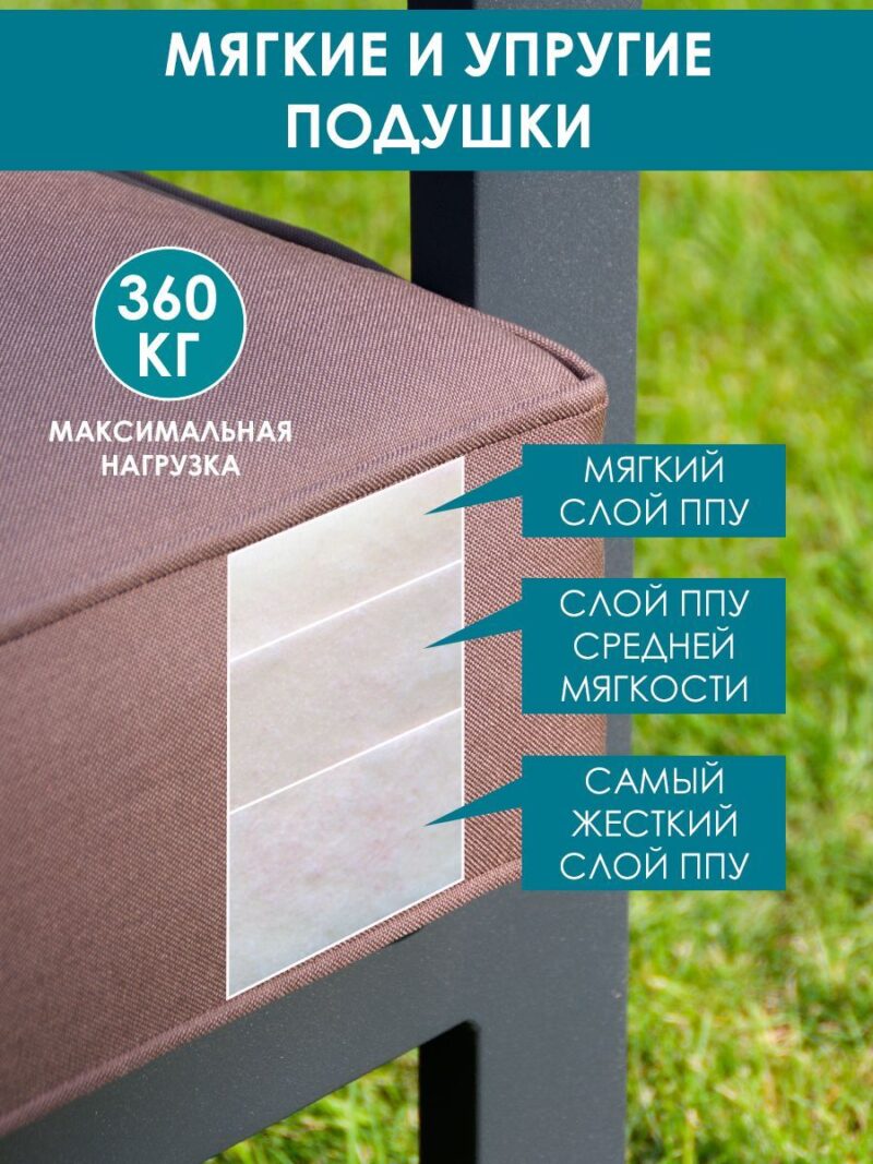 Размеры подушек: для сиденья ШхВхГ660х120х800 мм; Вес: 3 кг.
