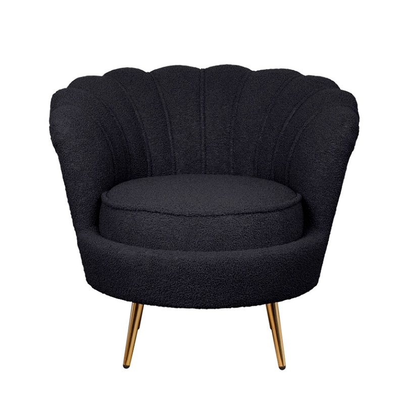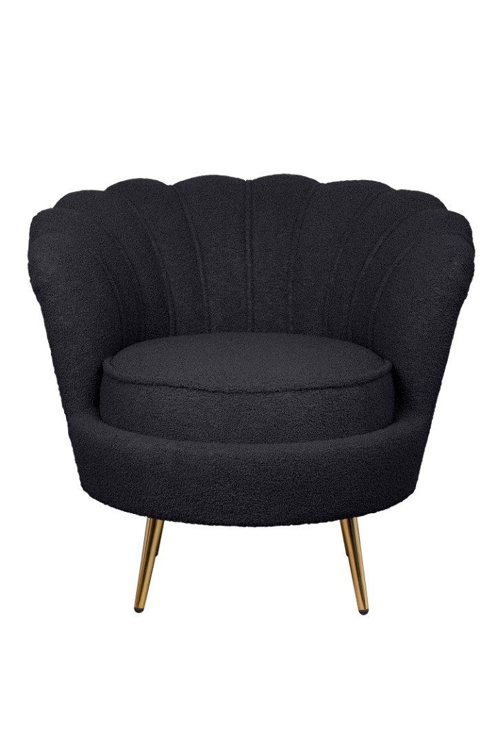 Запросить индивидуальное предложениеДизайнерское кресло Pearl Black Boucle на основе каркаса из натурального дерева, с обивкой букле, декорированной продольными стежками на внутренней стороне спинки. Модель выполнена в ткани букле черного цвета, по форме напоминает створку раковины, огибающей жемчужину – круглую подушку для сидения. Короткие металлические ножки с блестящей золотистой поверхностью расходятся в виде лучей под небольшим наклоном к основанию. Мебель роскошно выглядит и подходит для оформления элитных интерьеров.