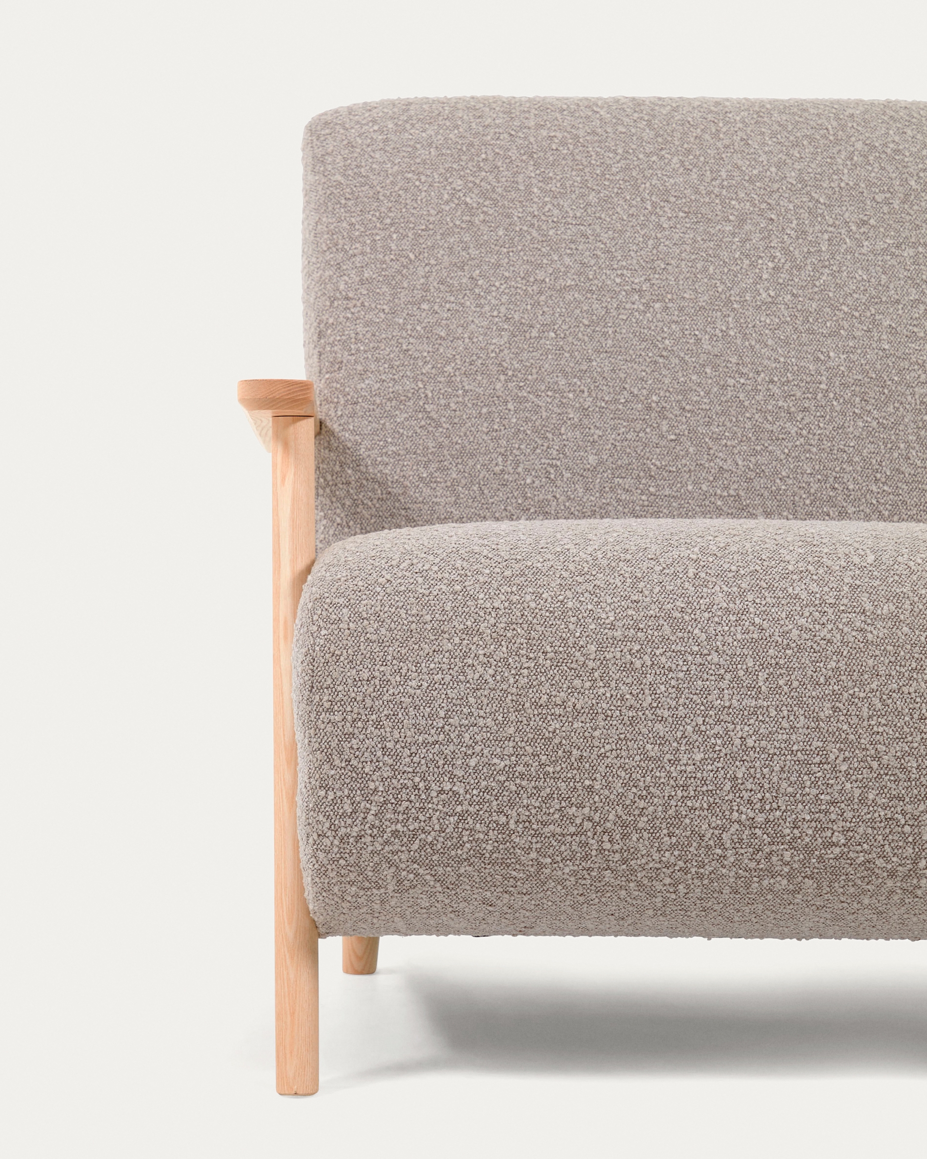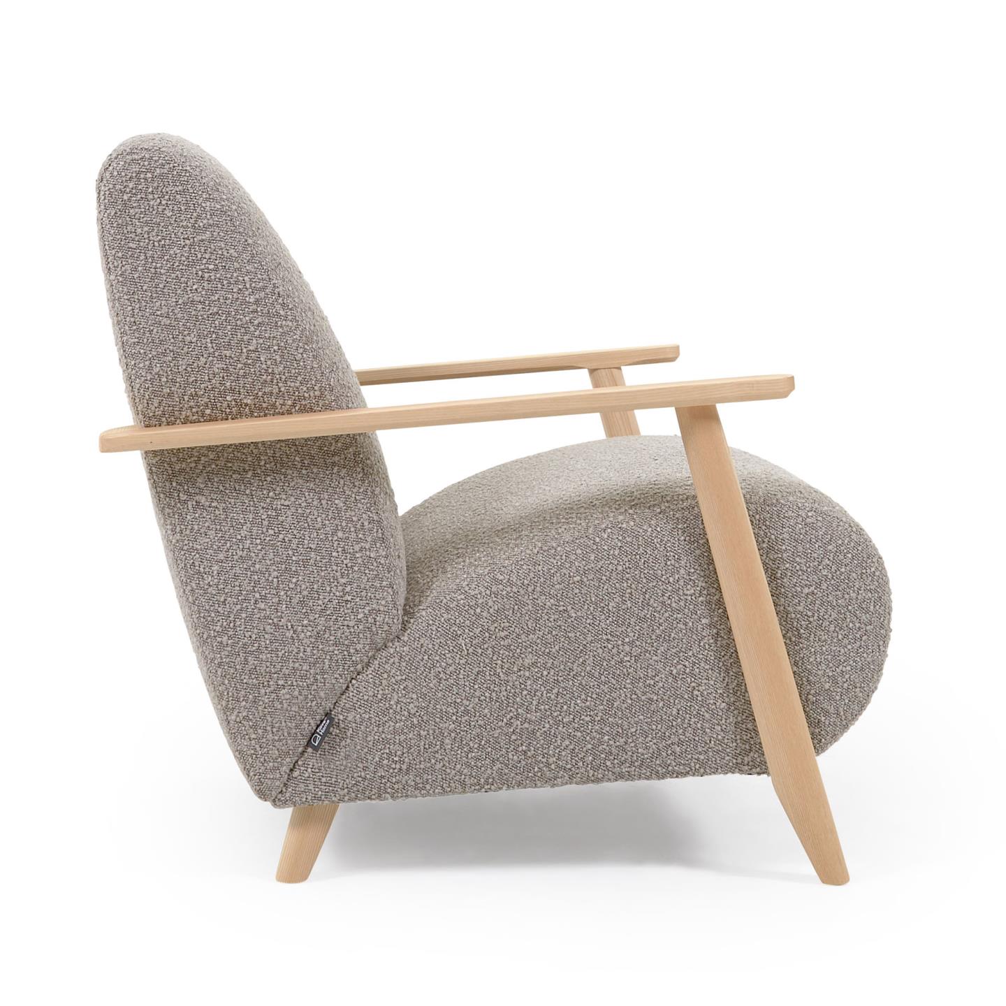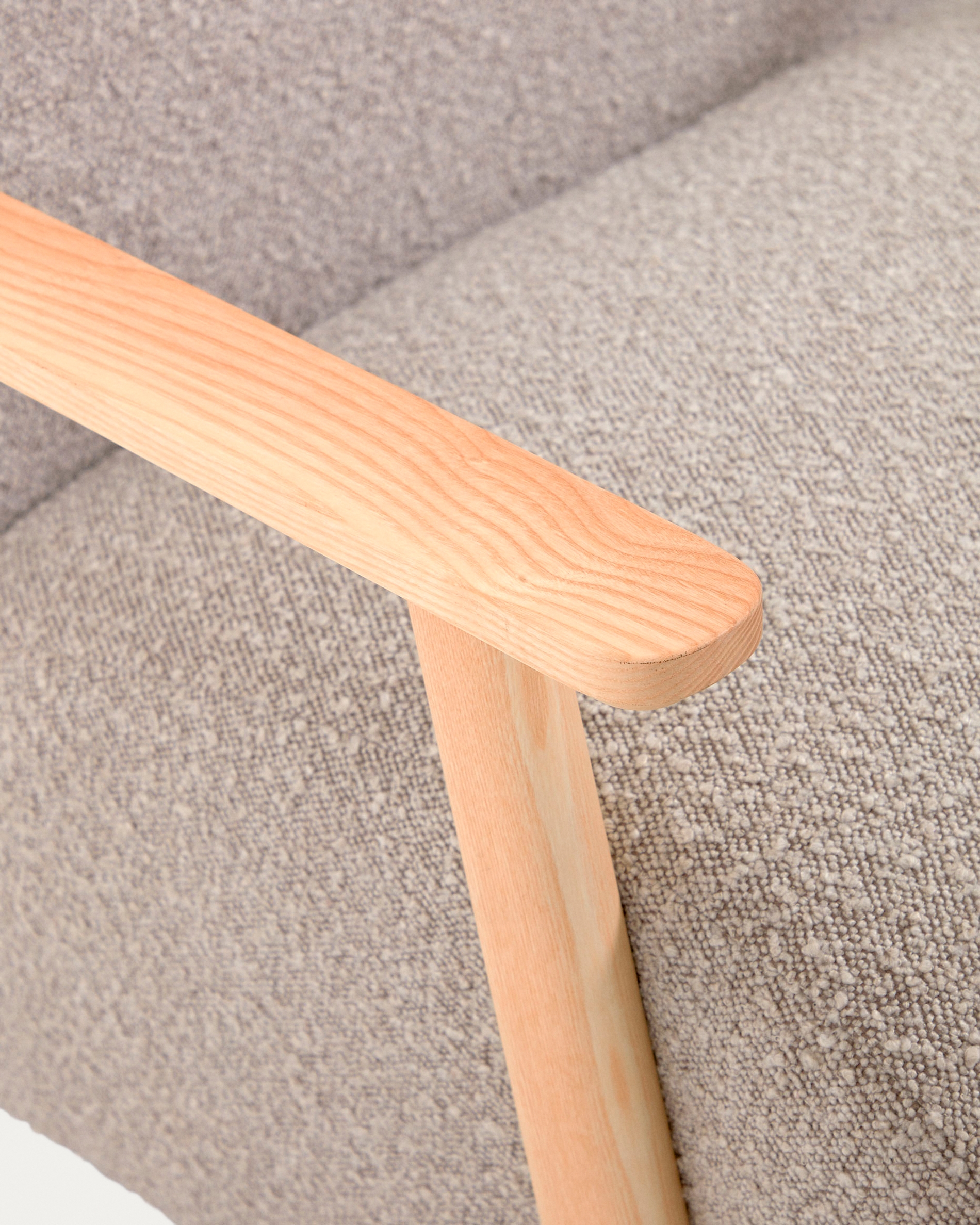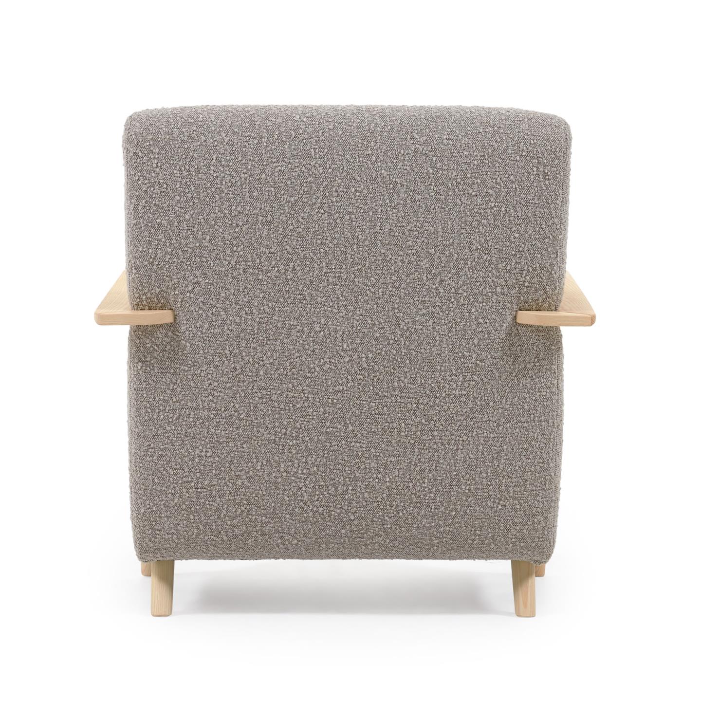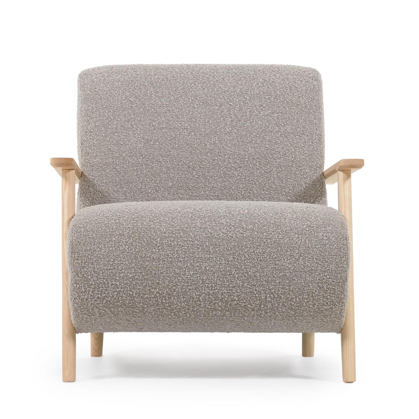 Кресло Meghan из серой ткани букле с ножками из массива ясеня с натуральной отделкой
