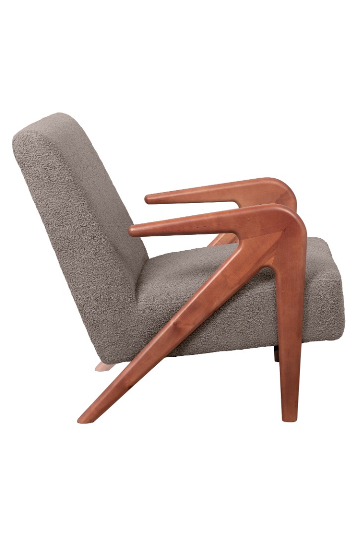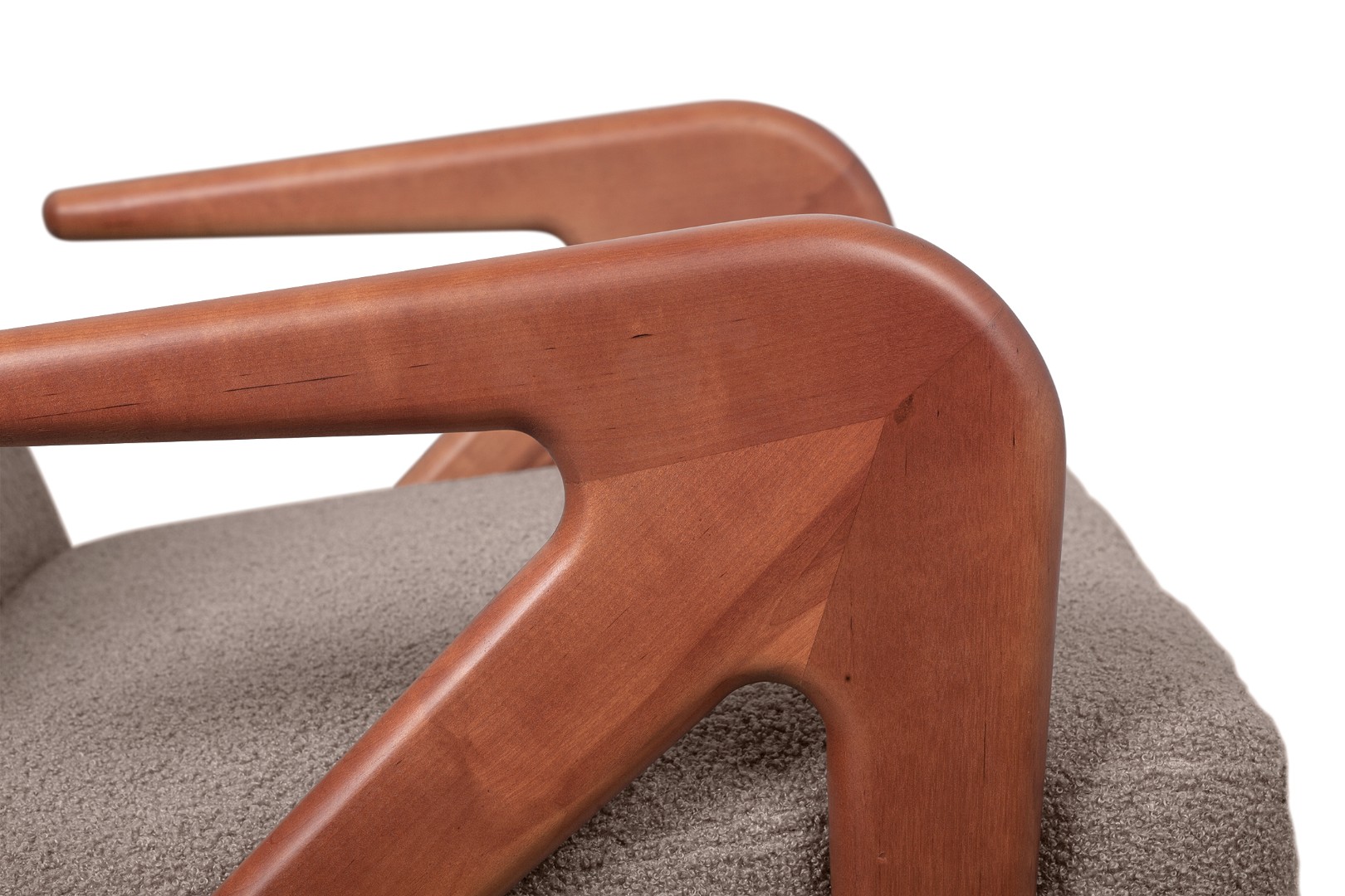Запросить индивидуальное предложениеМягкое кресло Arrow BR V2 с ножками из бука, покрытыми коричневой краской и плавно переходящими в подлокотники, украсит интерьеры в минималистическом стиле со строгими геометрическими формами. Бук имеет высокую прочность и износостойкость. Модная мебельная ткань обивки «букле» придает креслу удобство и элегантность. Ее название образовано от французского слова boucler – «завивать». Букле имеет мягкую и приятную на ощупь поверхность, не требует сложного ухода.