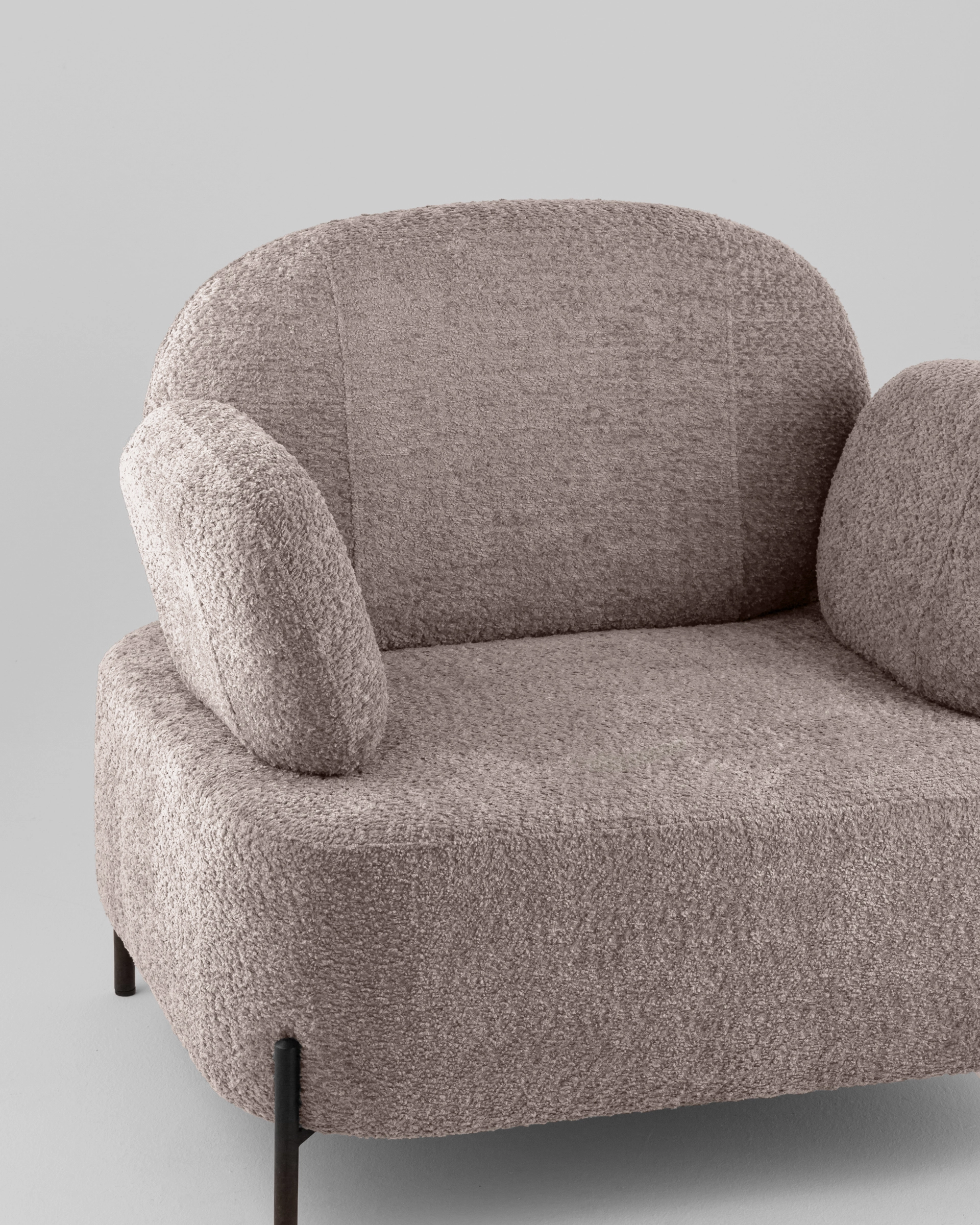 Обивка выполнена из простого в уходе букле - мягкого и нежного на ощупь.
