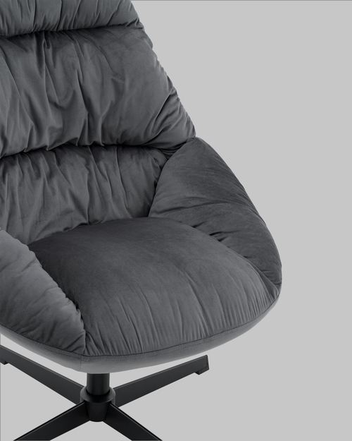Особенности дизайна и материалы. В качестве обивки используется высокопрочная ткань — велюр. Эта ткань не только приятна на ощупь, но и отличается износостойкостью и гигроскопичностью. Она быстро восстанавливает свою форму после механических воздействий или намокания. Мягкое сиденье с высокой анатомической спинкой подарит максимальный комфорт и уют, позволяя расслабиться даже при длительном сидении. Сочетание черного каркаса и серой велюровой обивки с красивой отдекорированной строчкой на спинке подчеркивает элегантность данной модели.