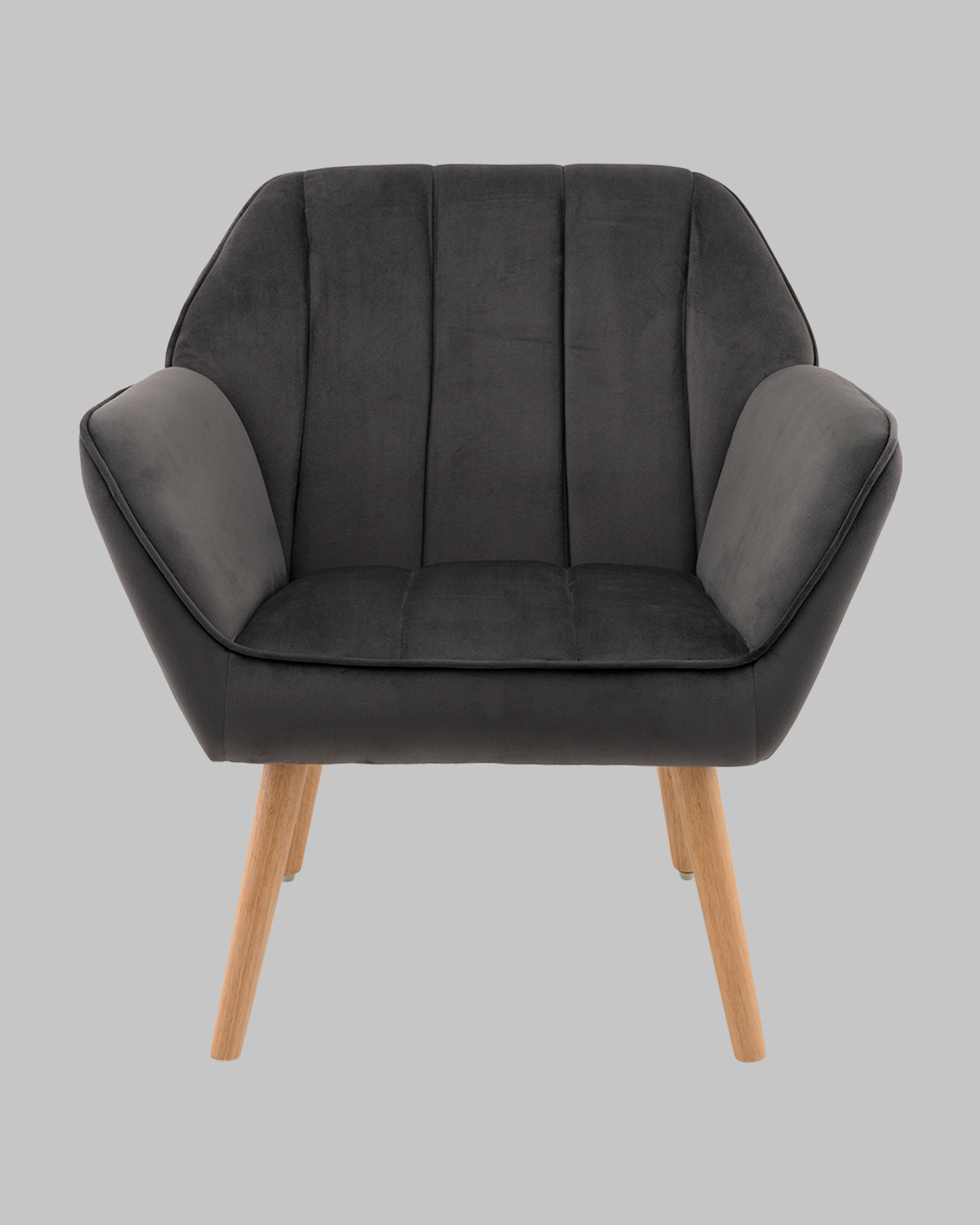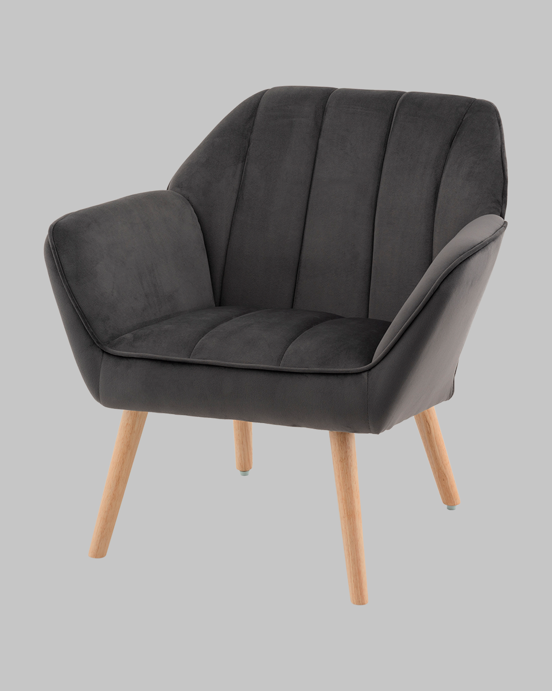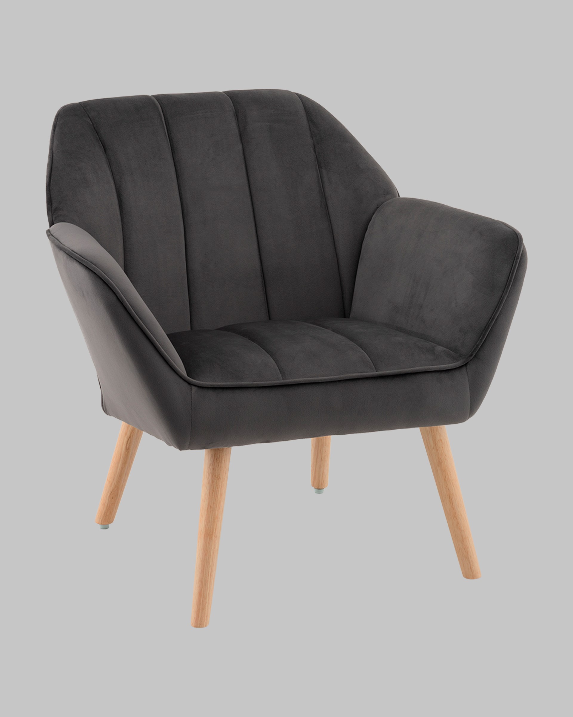 Кресло Руди в сером цвете — идеальный элемент для стильной гостиной, спальни или зоны отдыха. Универсальный серый оттенок велюровой обивки легко вписывается в любые интерьеры — от скандинавского до минимализма. Благодаря своим габаритам, кресло обеспечит комфортное размещение даже в компактном пространстве.
