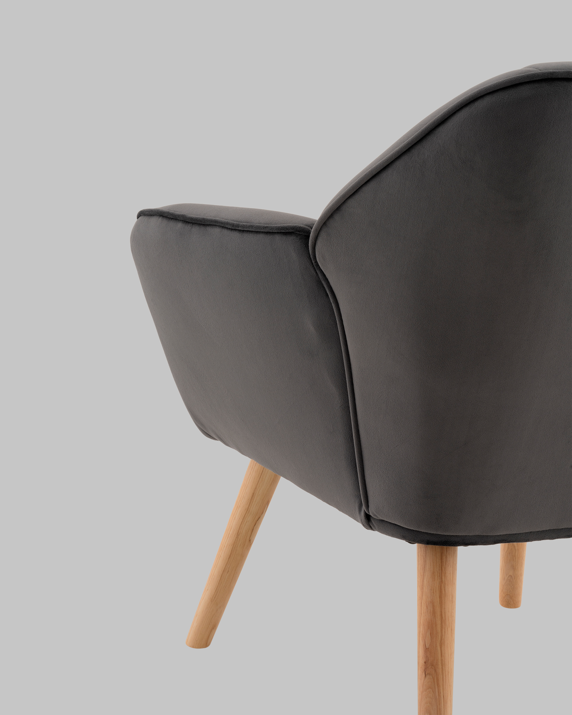 Каркас и ножки изготовлены из массива гевеи — прочной древесины с благородной текстурой. Светлый оттенок дерева эффектно контрастирует с серой обивкой. Максимальная нагрузка на кресло составляет 120 кг.