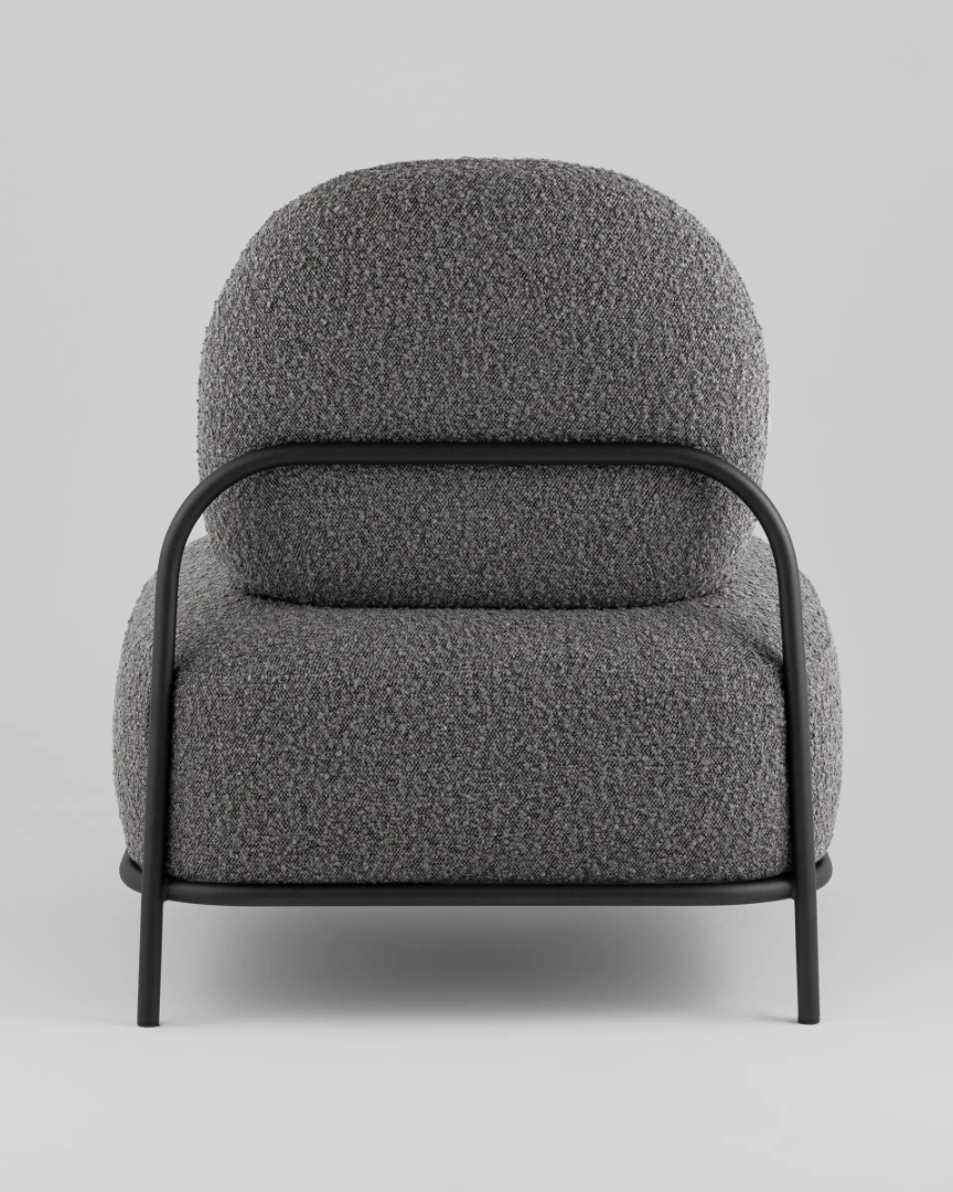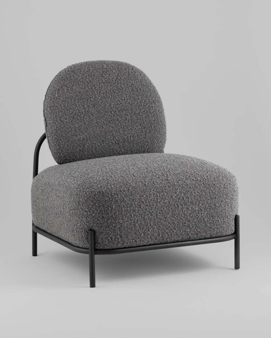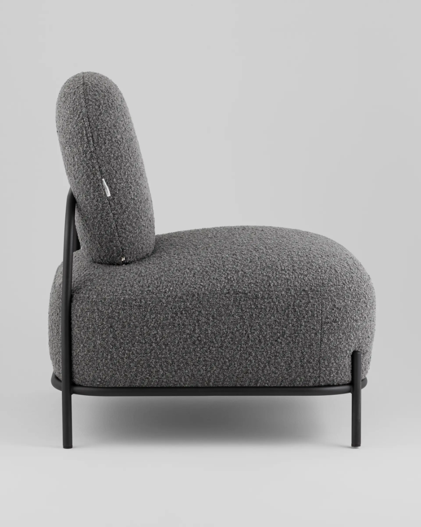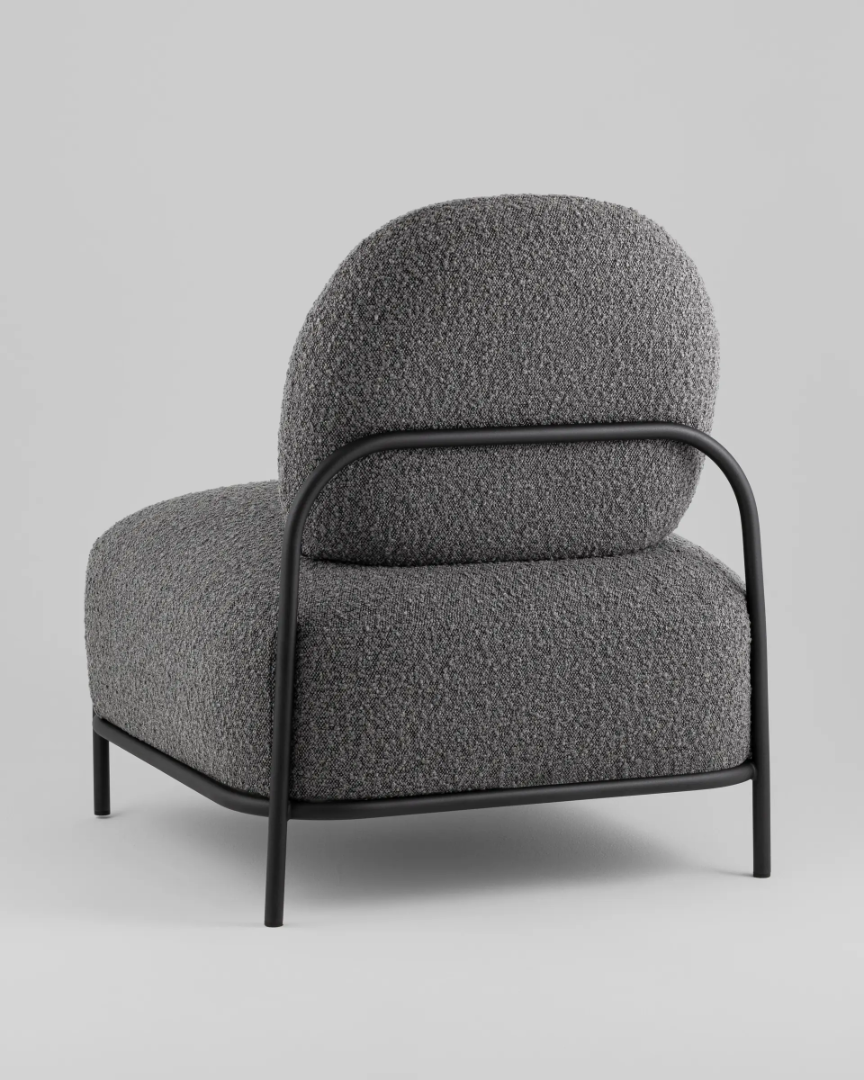 Мягкая обивка из ткани букле темно-серого цвета создает уют и добавляет текстурный акцент в интерьер. Этот материал отличается приятной на ощупь поверхностью и износостойкостью, что делает кресло долговечным и практичным.