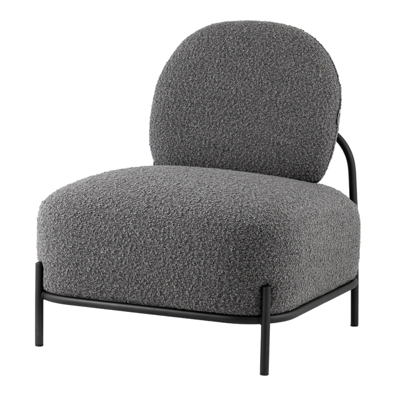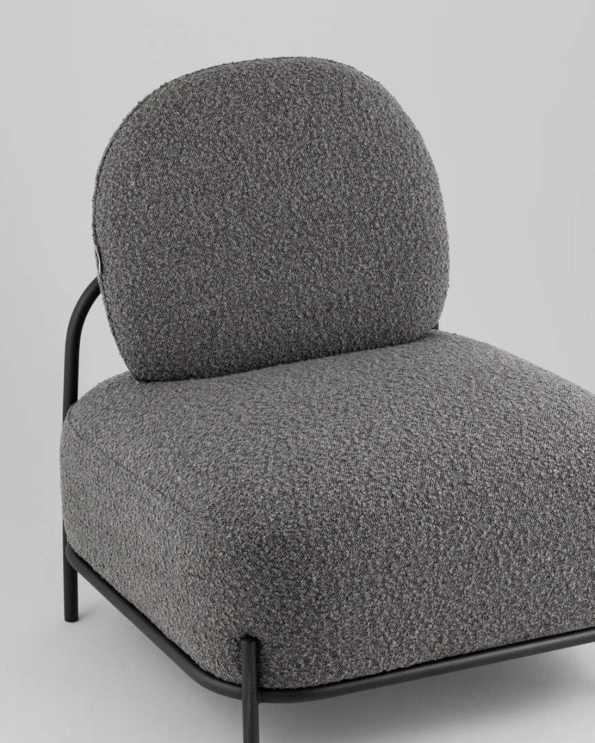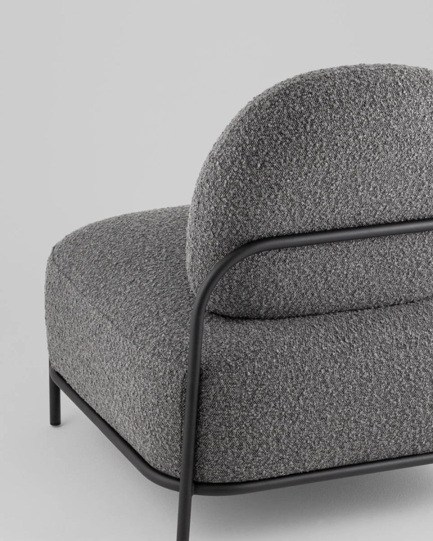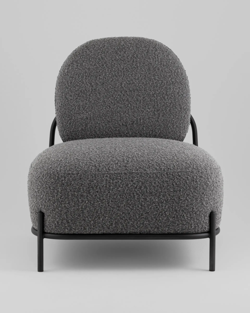 Мягкая обивка из ткани букле темно-серого цвета создает уют и добавляет текстурный акцент в интерьер. Этот материал отличается приятной на ощупь поверхностью и износостойкостью, что делает кресло долговечным и практичным.
