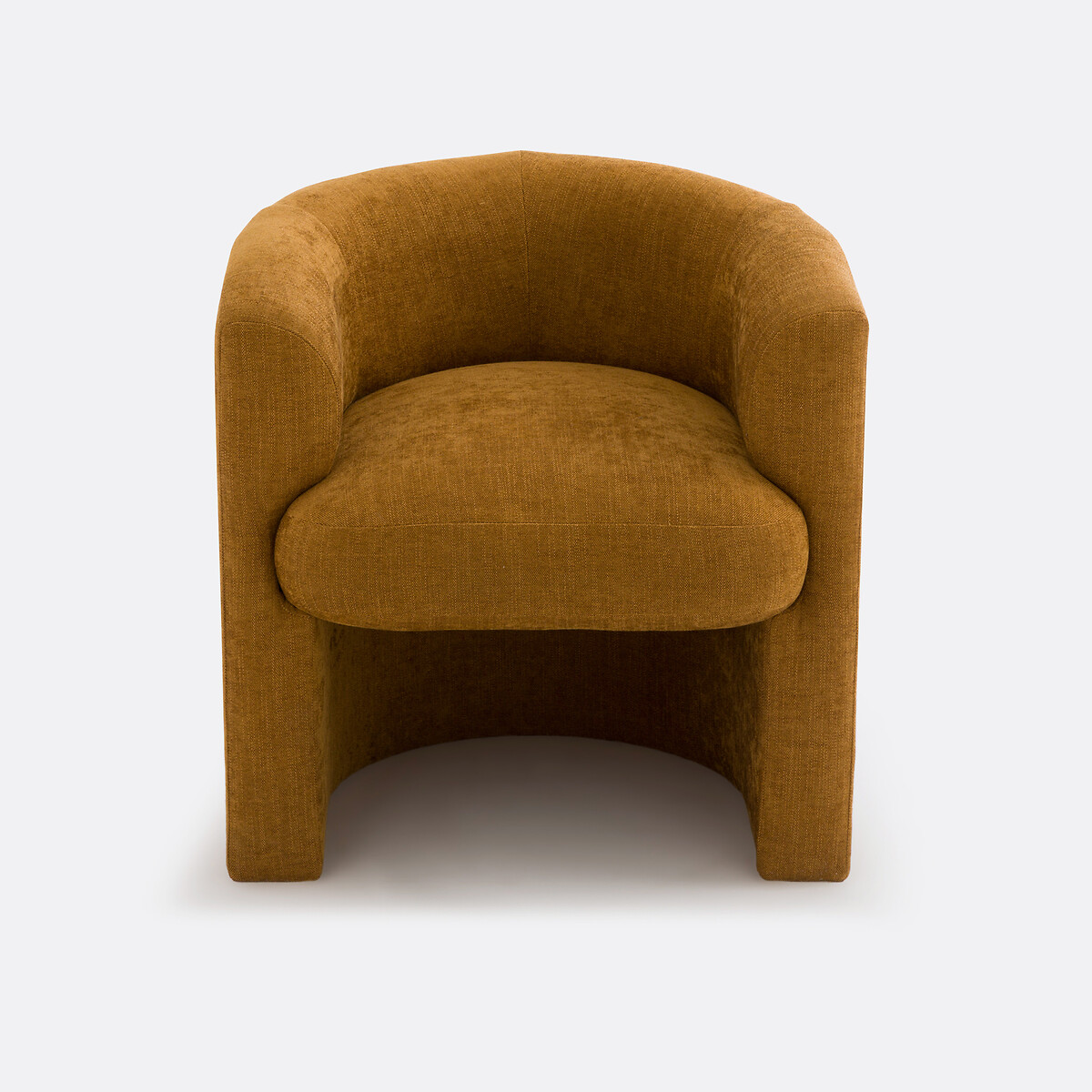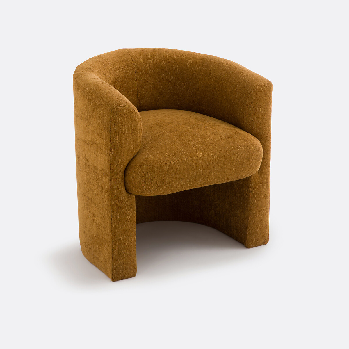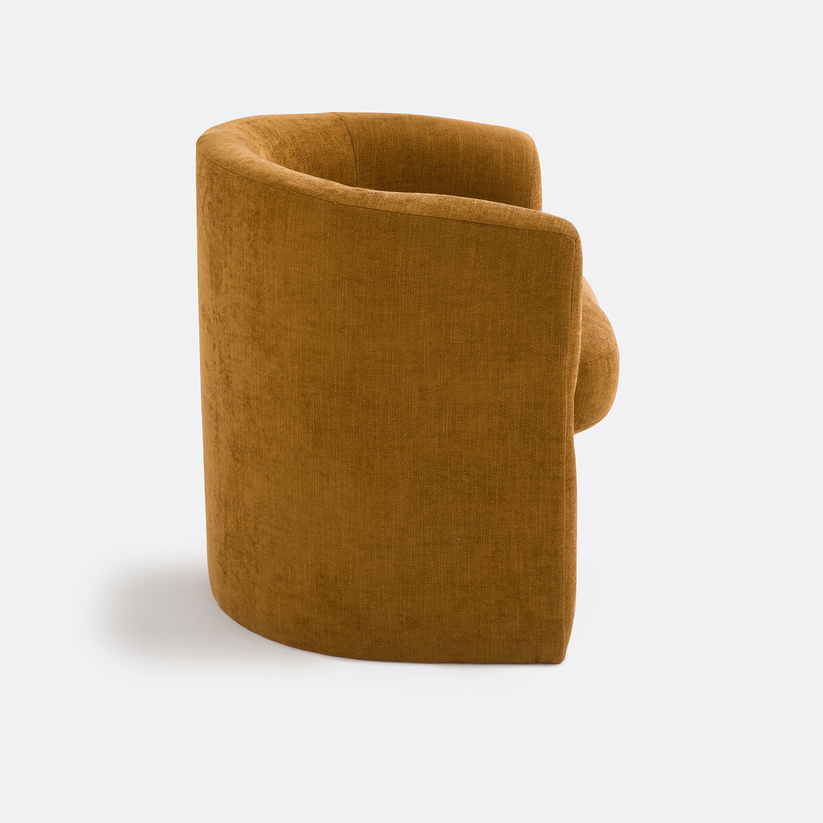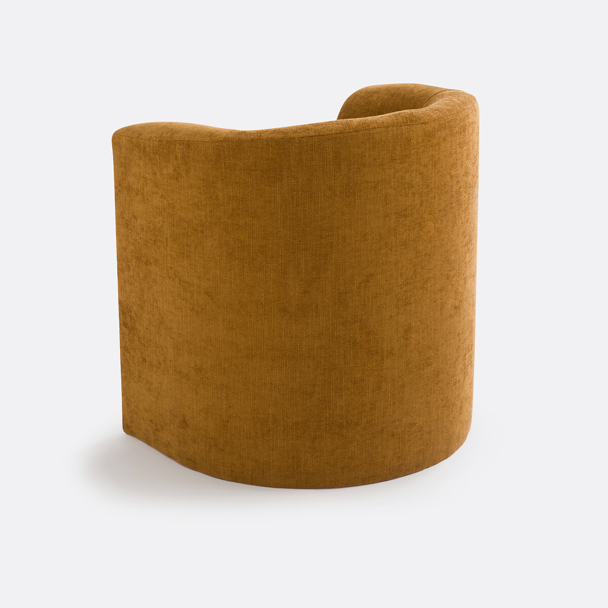 Кресло Nolami от La Redoute Intérieurs -- это ода минимализму с акцентом на форму и комфорт. Закруглённые линии, тактильная рифлёная обивка и глубокий охристый оттенок создают предмет, который не только функционален, но и визуально обволакивает пространство теплом.