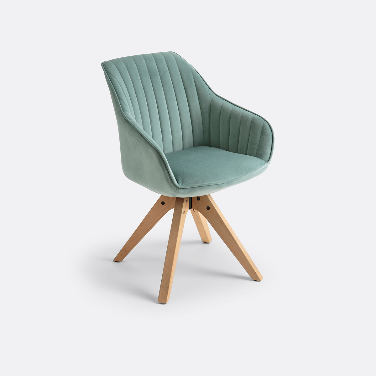 • Обивка вельветовой тканью 100% полиэстер цвета селадон.