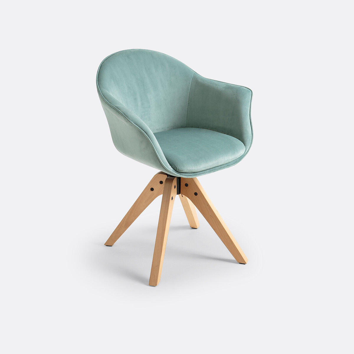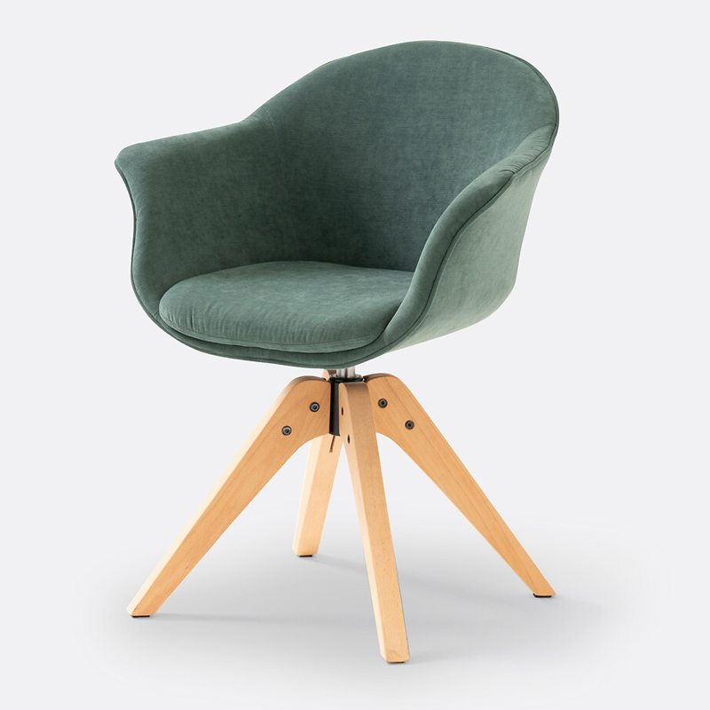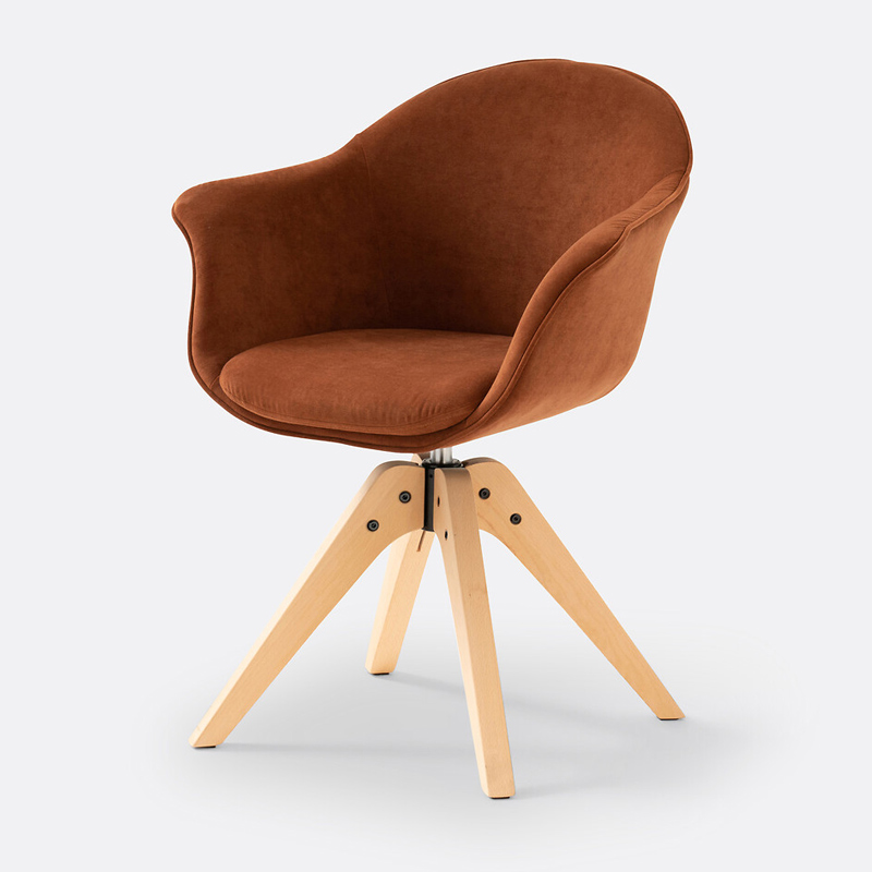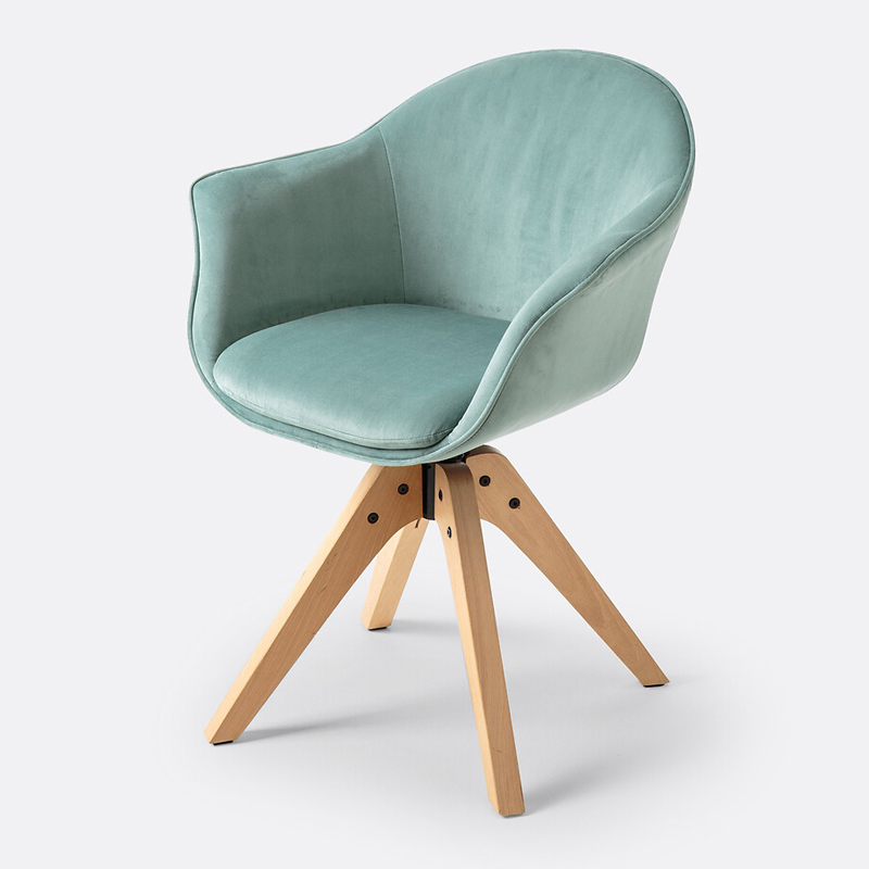 Вращающееся офисное кресло QUILDA. Офисное кресло QUILDA с великолепным сочетанием велюровой ткани и натурального дерева в винтажном стиле, очень прочное и удобное.