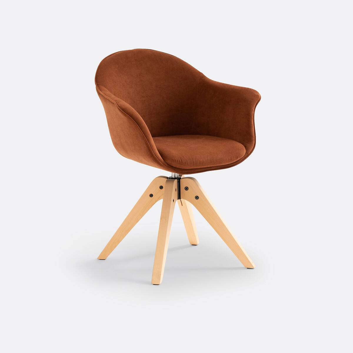 • Вращающееся кресло без регулировки по высоте, обивка велюровой тканью 100% полиэстер.