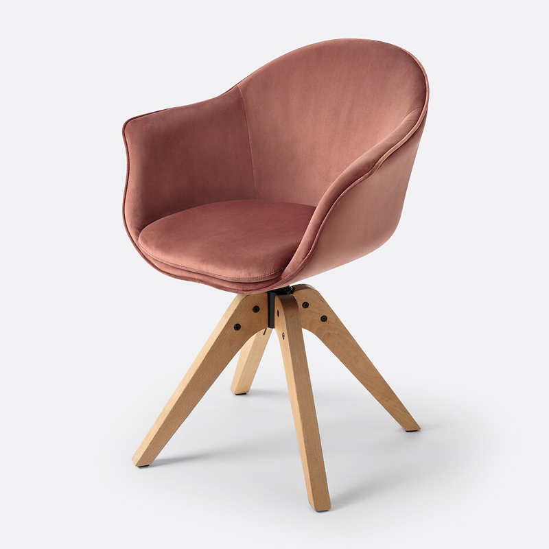 • Вращающееся кресло без регулировки по высоте, обивка велюровой тканью 100% полиэстер.