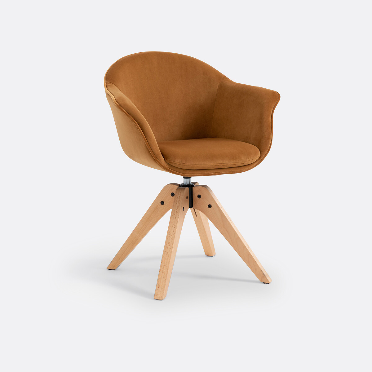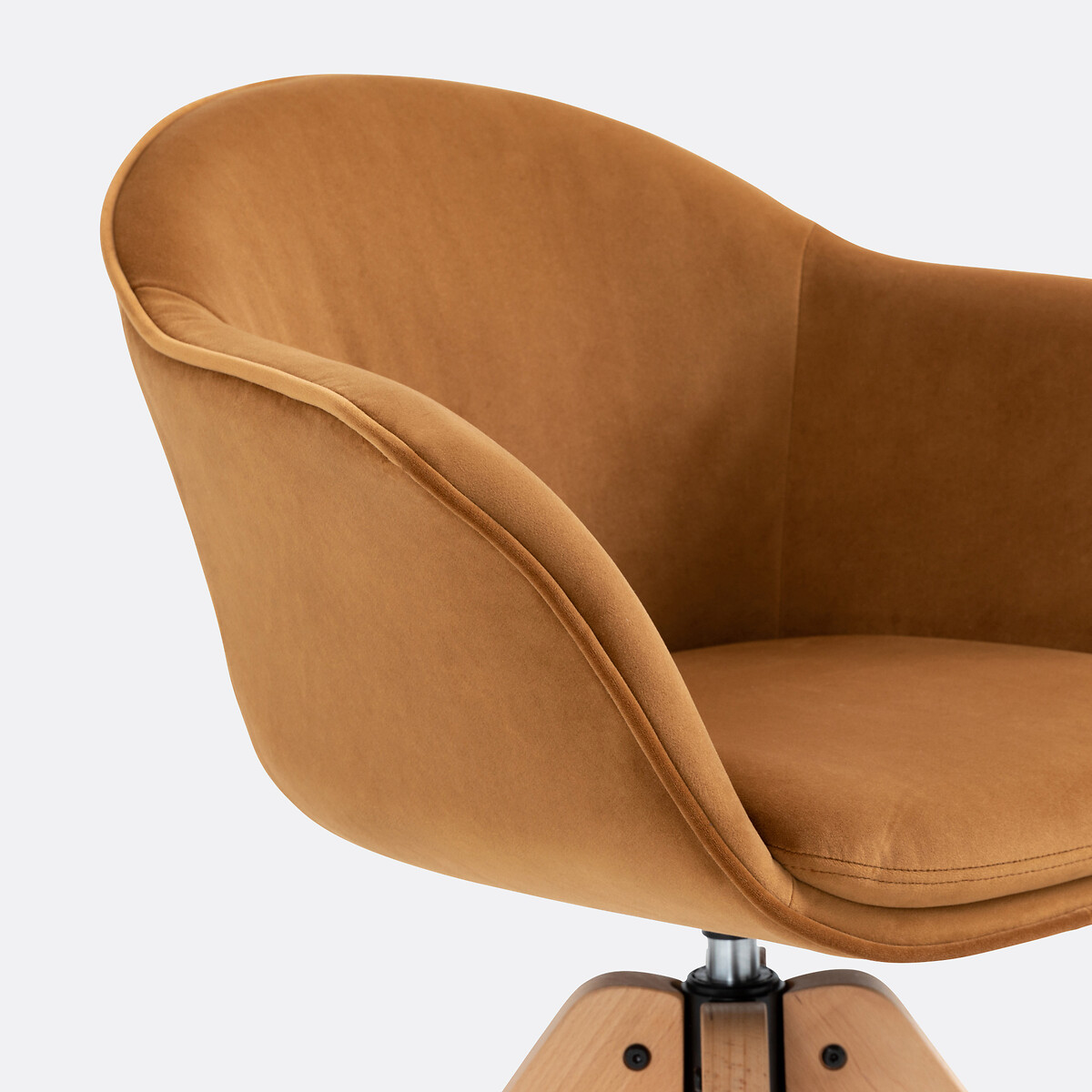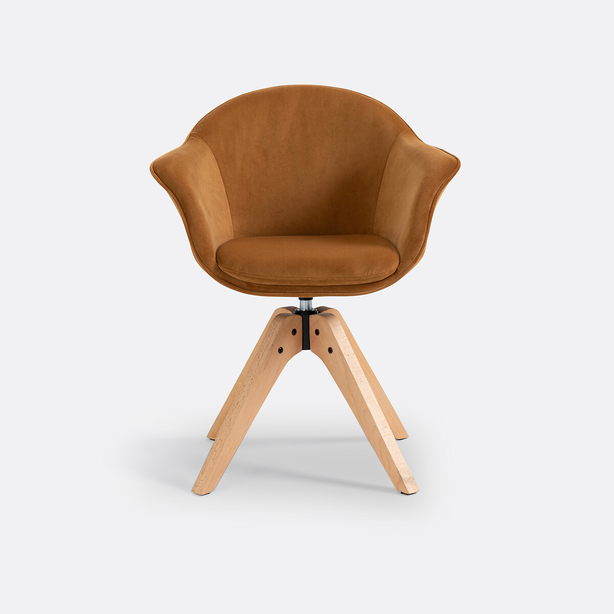 • Вращающееся кресло без регулировки по высоте, обивка велюровой тканью 100% полиэстер.